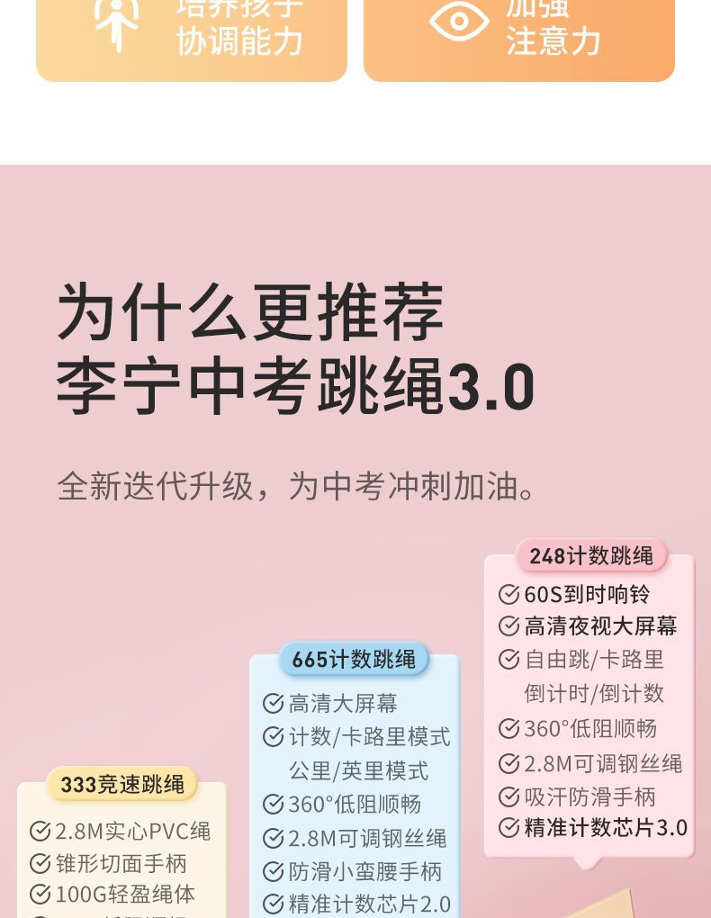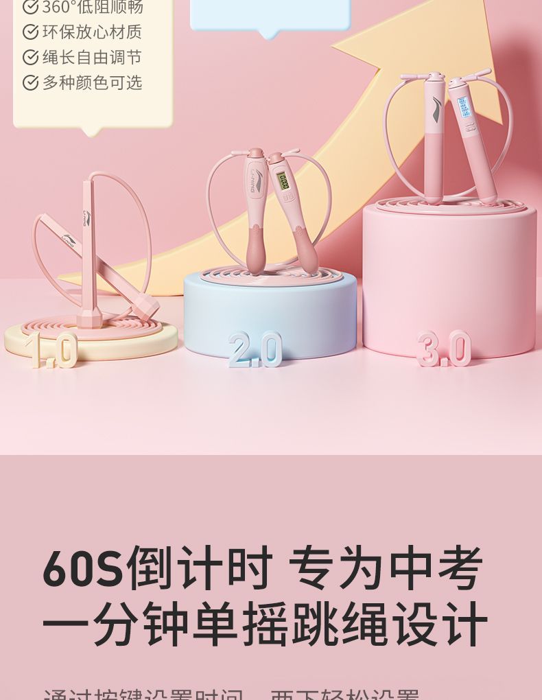 李宁中考跳绳学生计数专用健身运动初中体育考试计时儿童专业绳子