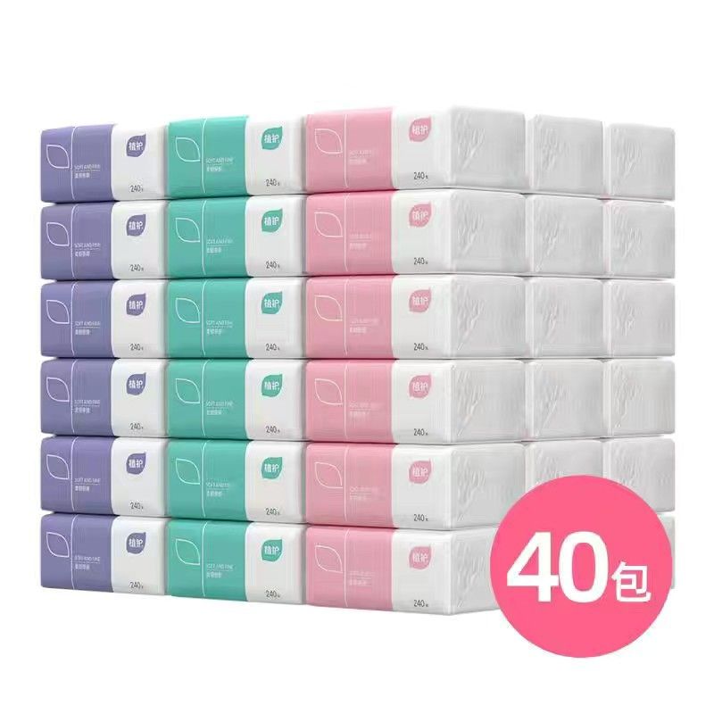 植护原木抽纸巾40包整箱批发婴儿家用实惠厚餐巾纸抽取面巾纸10包