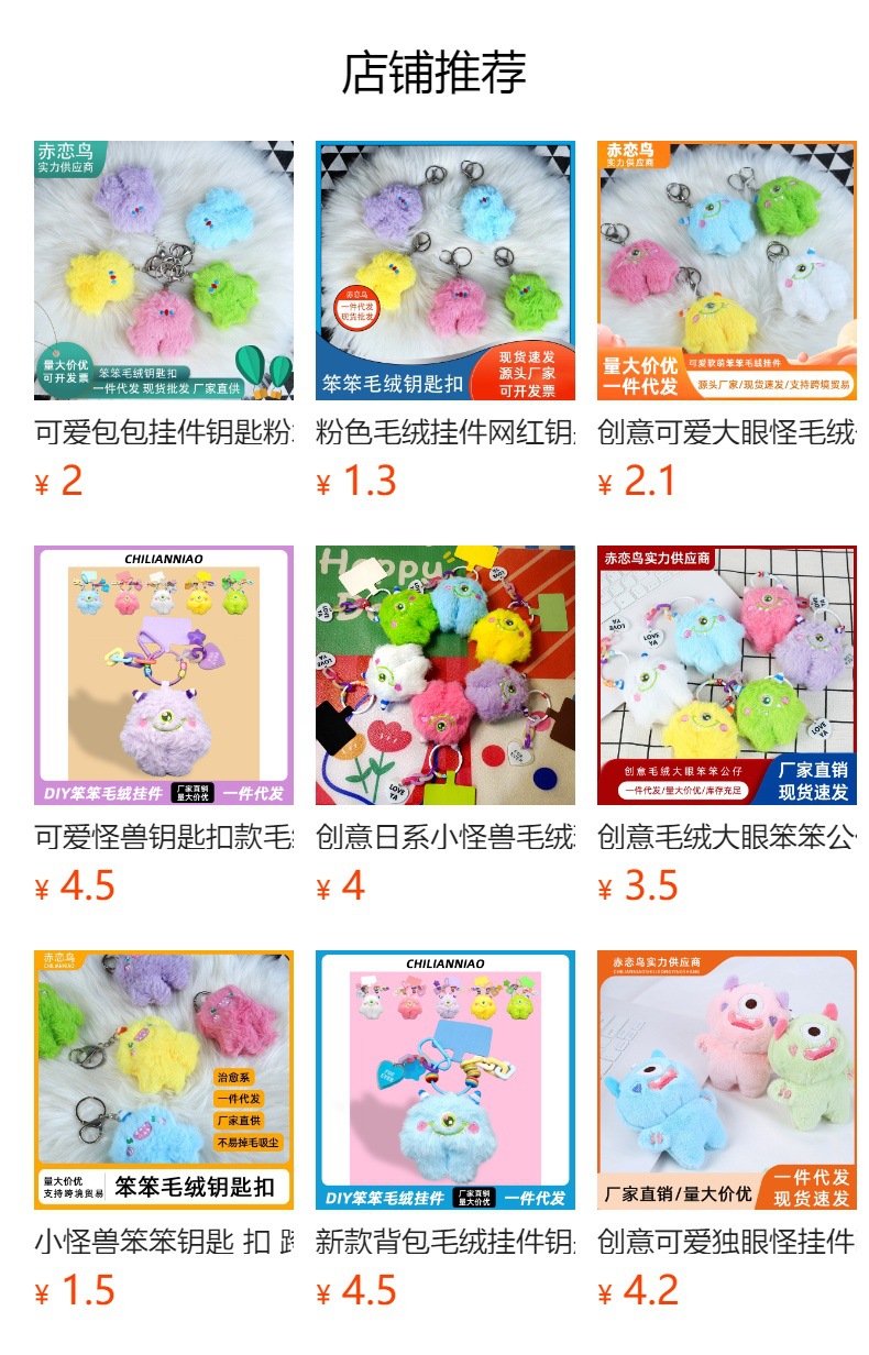 diy创意超萌小怪兽棉花娃娃手机壳毛绒挂饰可爱女生包包挂饰批发