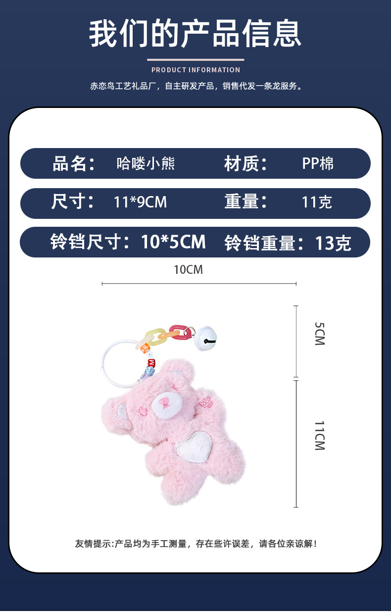 女孩哈喽小熊毛绒公仔汽车钥匙扣挂件动物毛绒玩偶女生小礼物批发