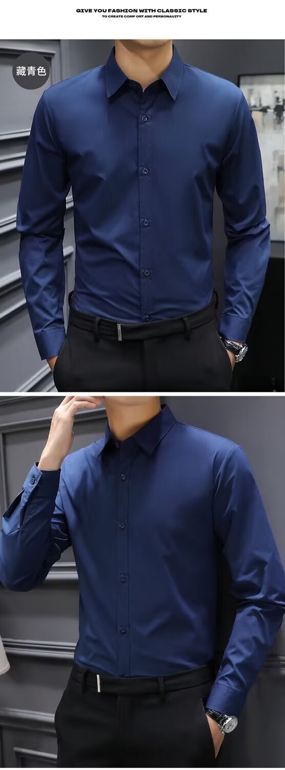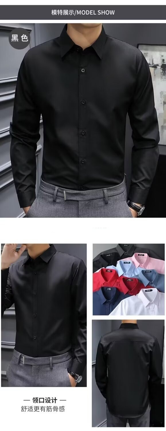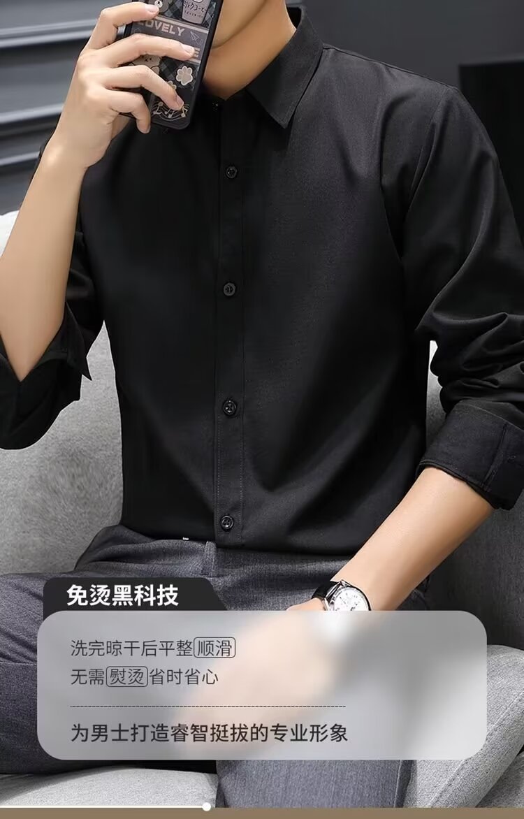 结婚衬衣男士黑色灰色高级寸衫修身商务正装抗皱上衣长袖西装衬衫