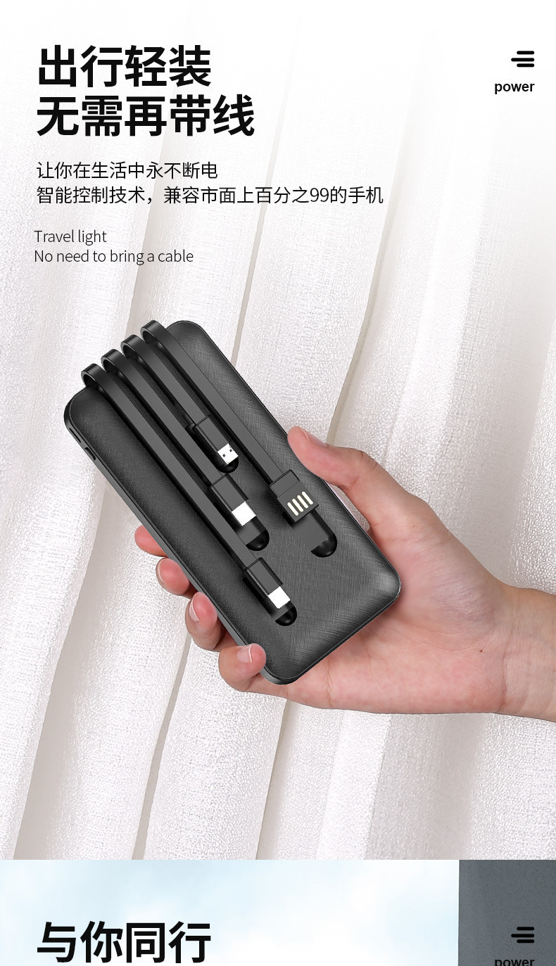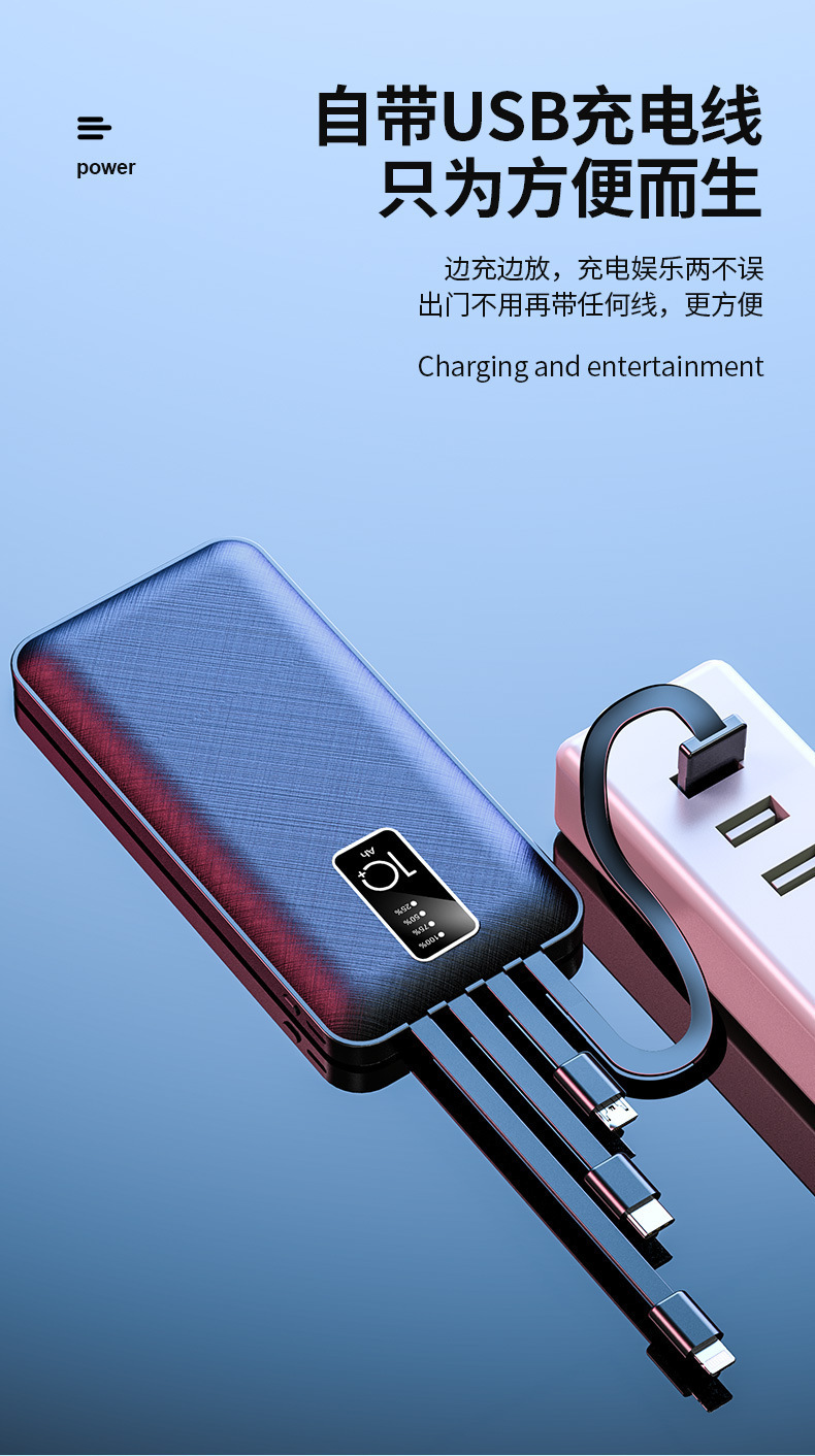 批发超薄自带四线20000毫安大容量充电宝移动电源礼品定印制LOGO