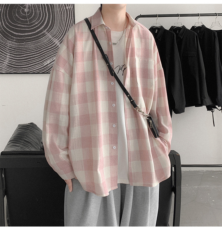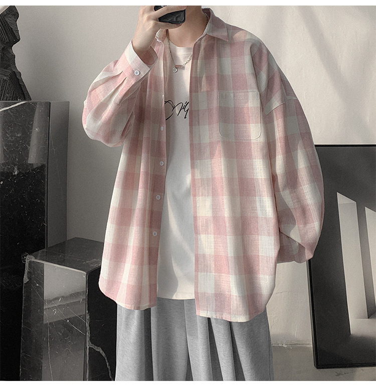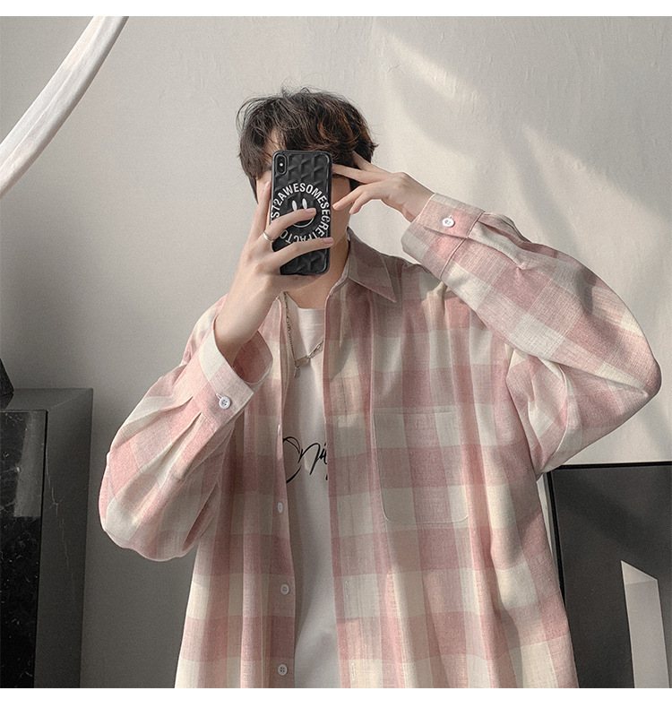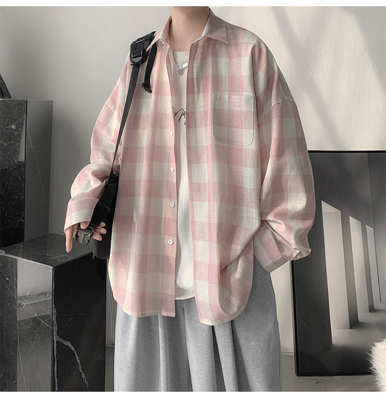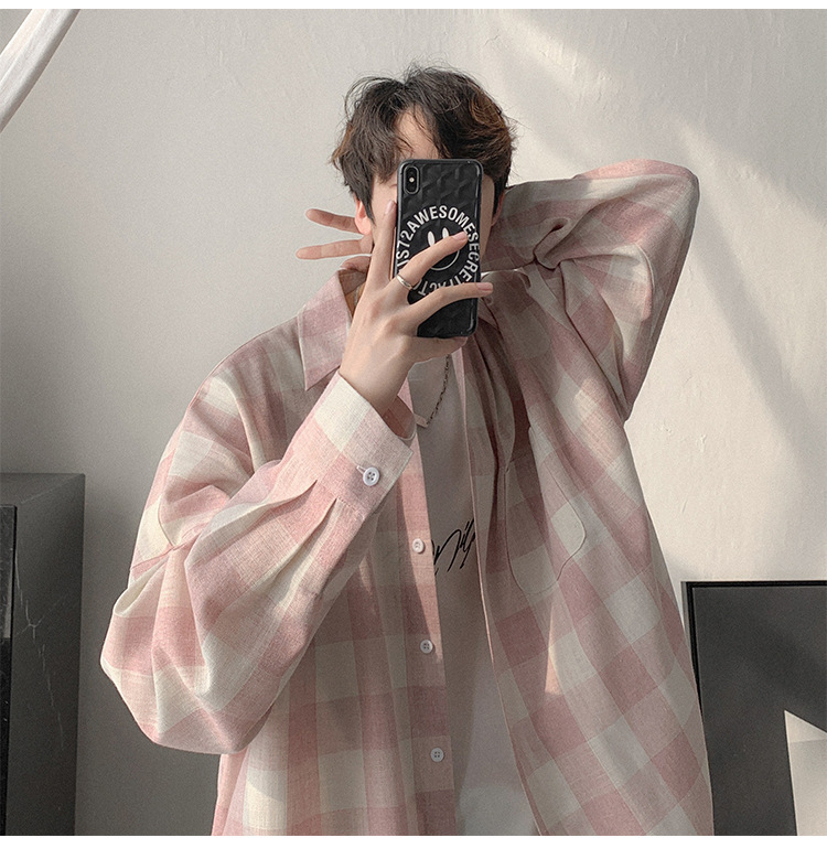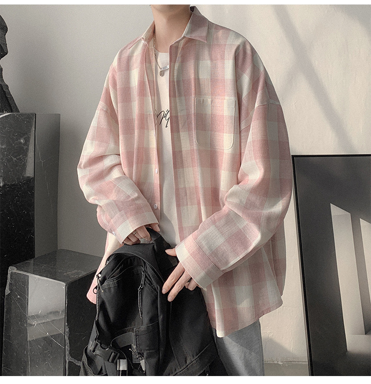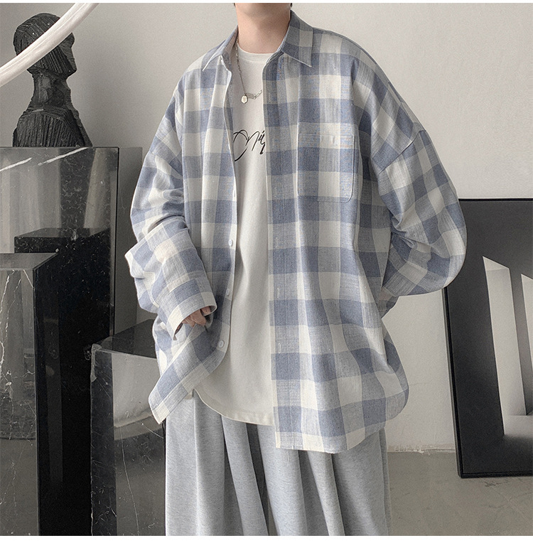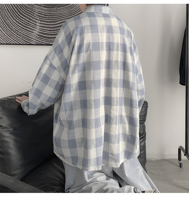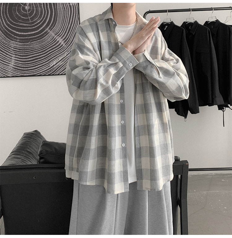 秋季格子衬衫男长袖ins港风痞帅休闲衬衣男韩版设计感寸衫代发