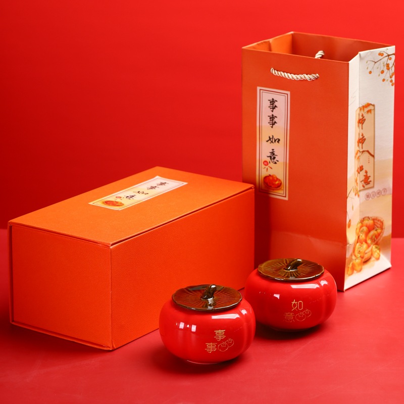 事事如意柿子摆件陶瓷茶叶罐创意结婚喜糖罐酒吧乔迁新居装饰礼品