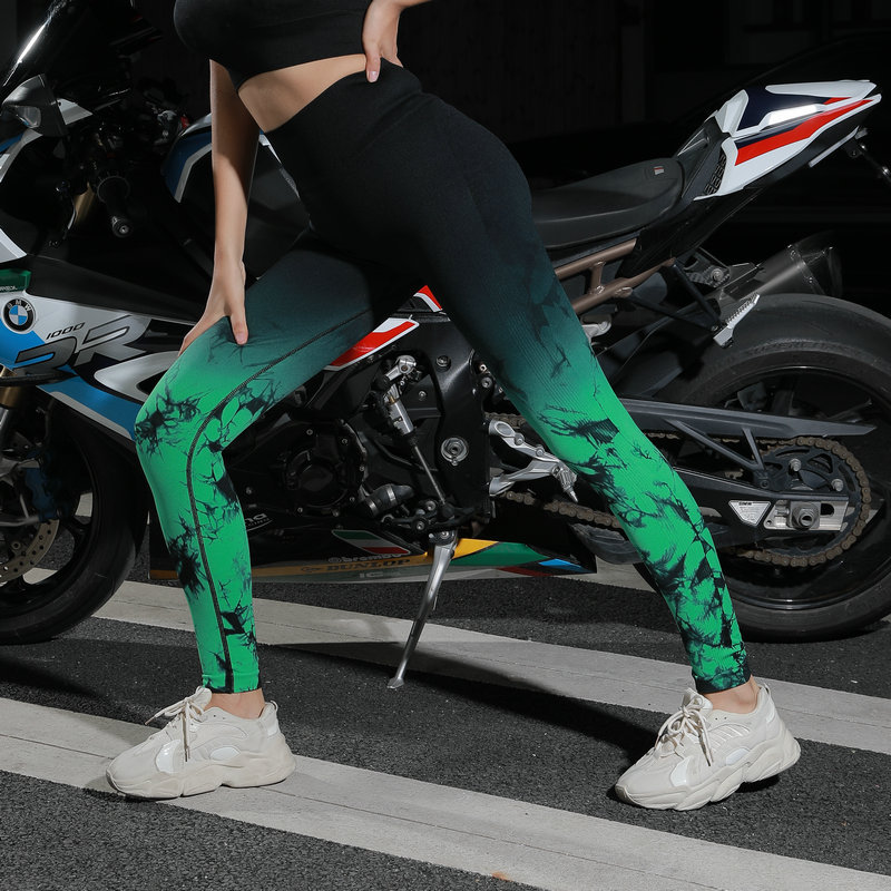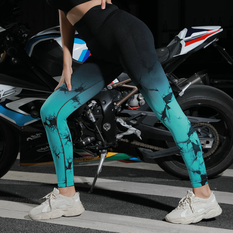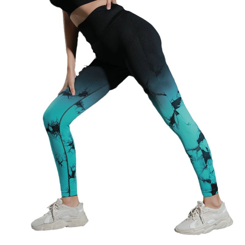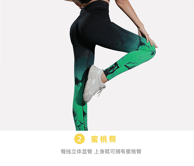 跨境瑜伽裤长裤高腰收腹蜜桃臀运动健身瑜伽裤渐变扎染跑步瑜伽服