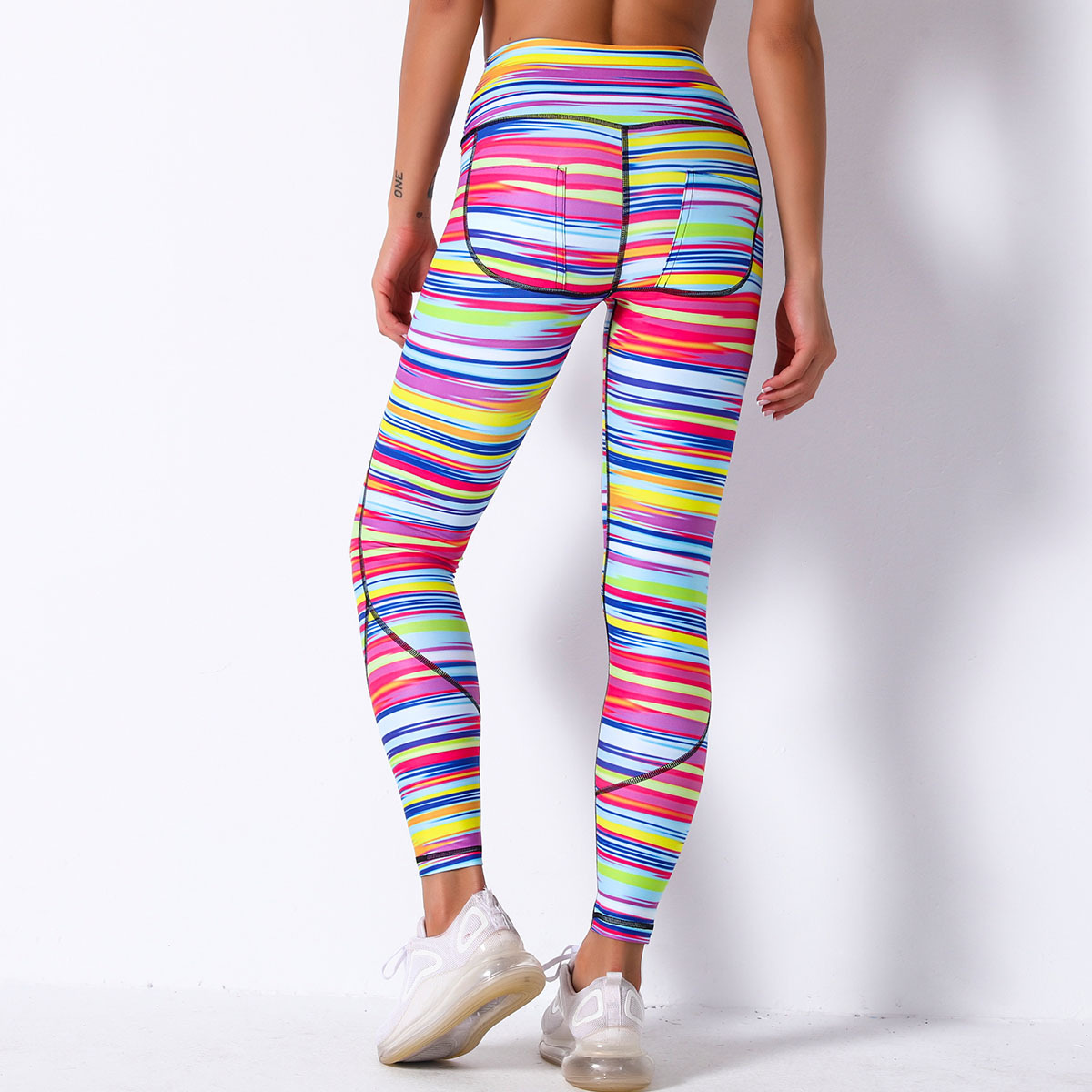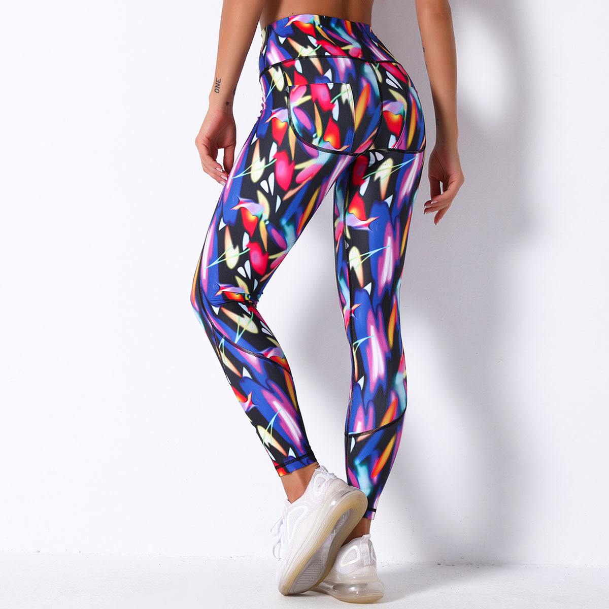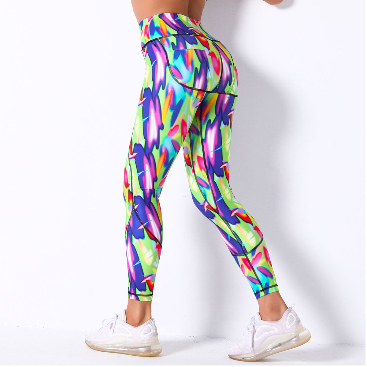 现货!欧美网红数码印花透气碎花瑜伽裤女高腰弹力运动跑步健身裤