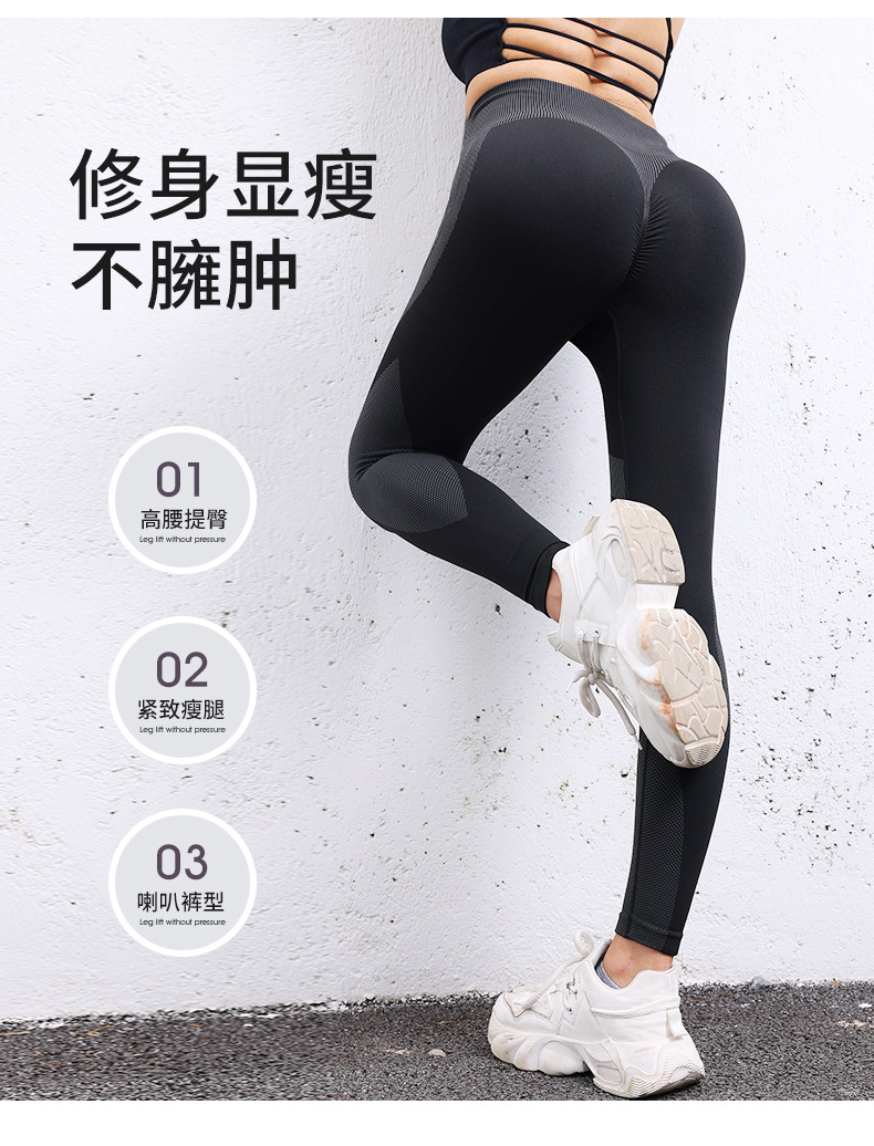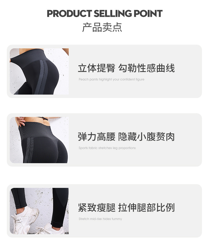 2024无缝新款瑜伽裤女款撞色高腰提臀高级感黑色条纹运动紧身长裤