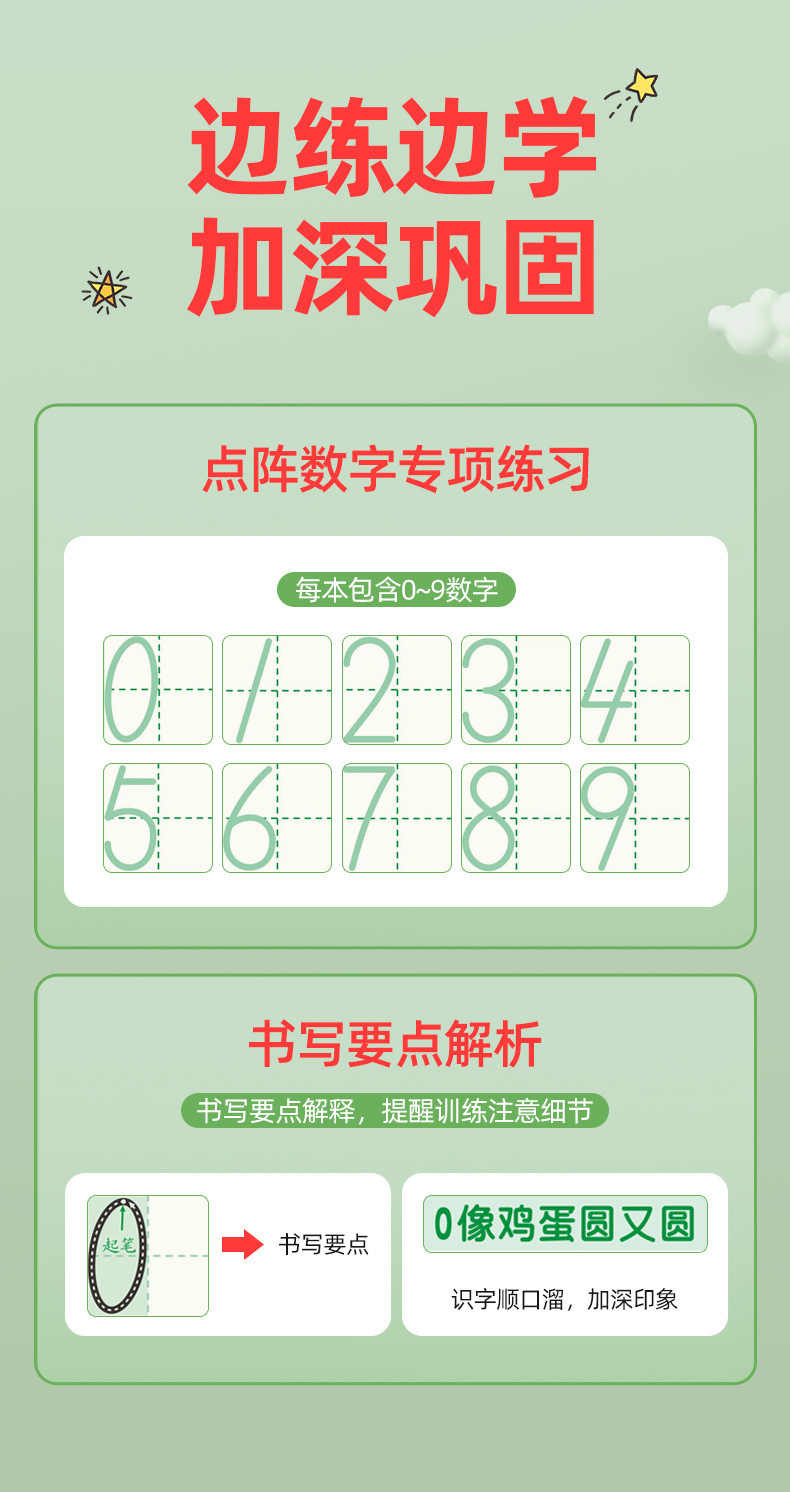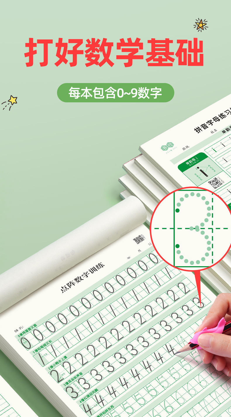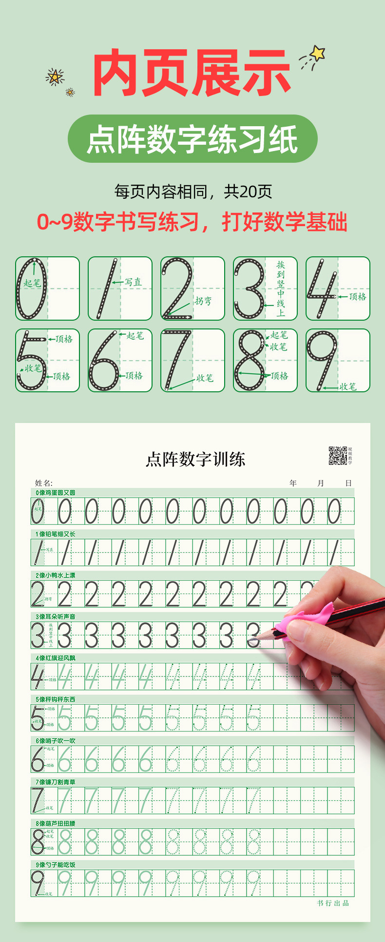 点阵数字练字帖硬笔临摹控笔训练幼儿园拼音笔画学前班大班描红本
