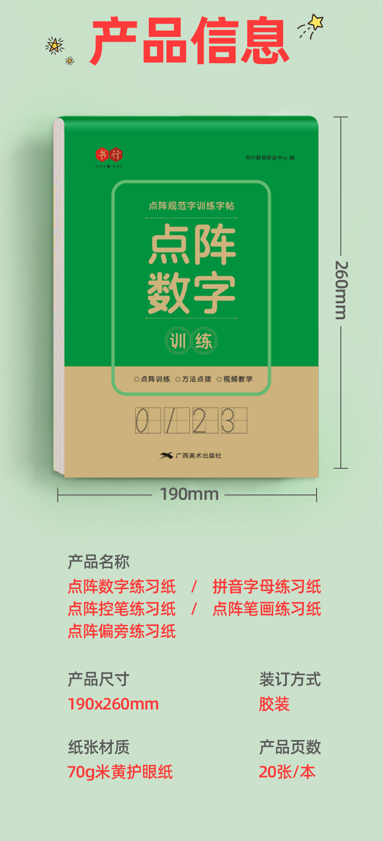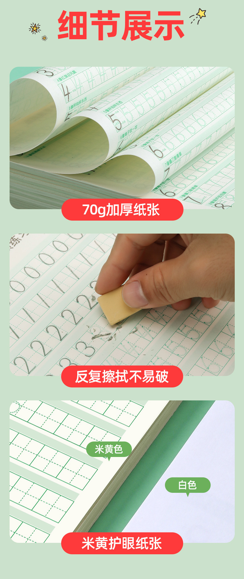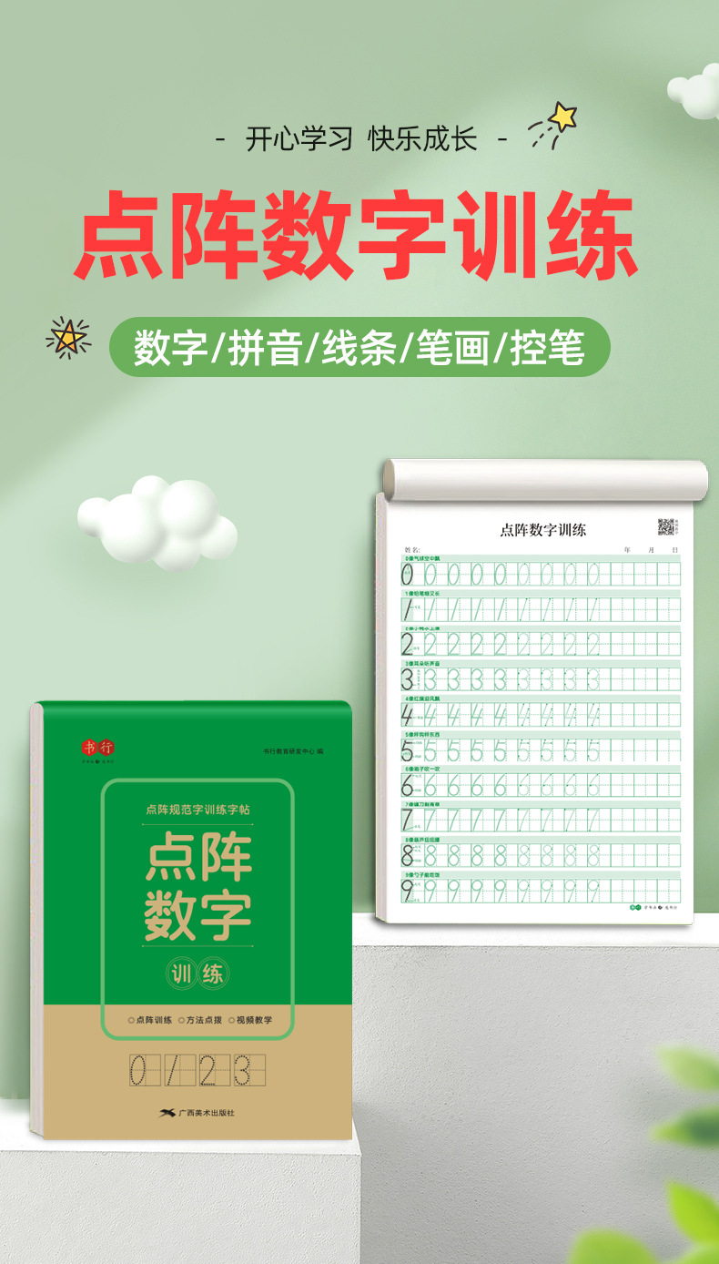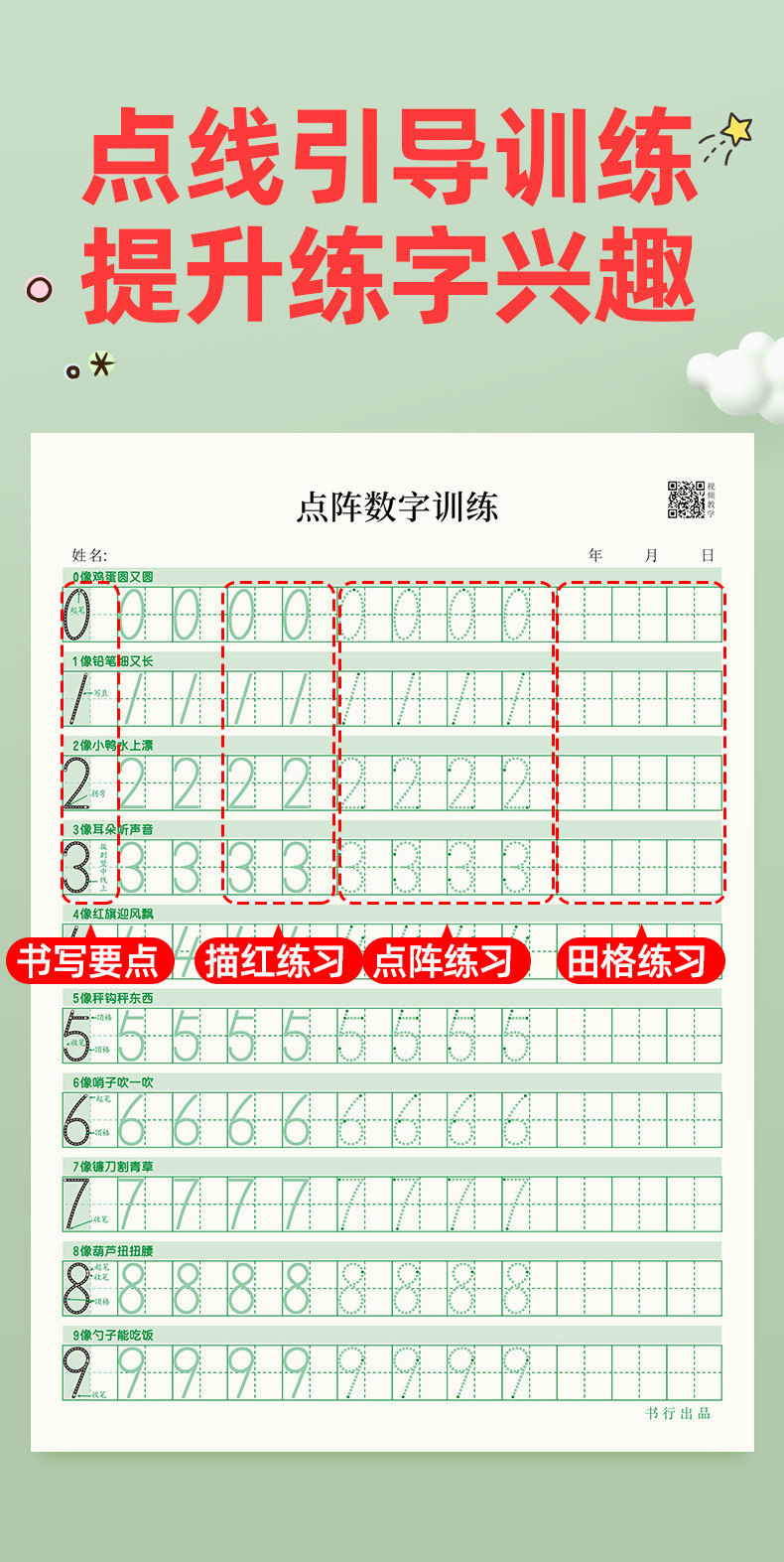 点阵数字练字帖硬笔临摹控笔训练幼儿园拼音笔画学前班大班描红本