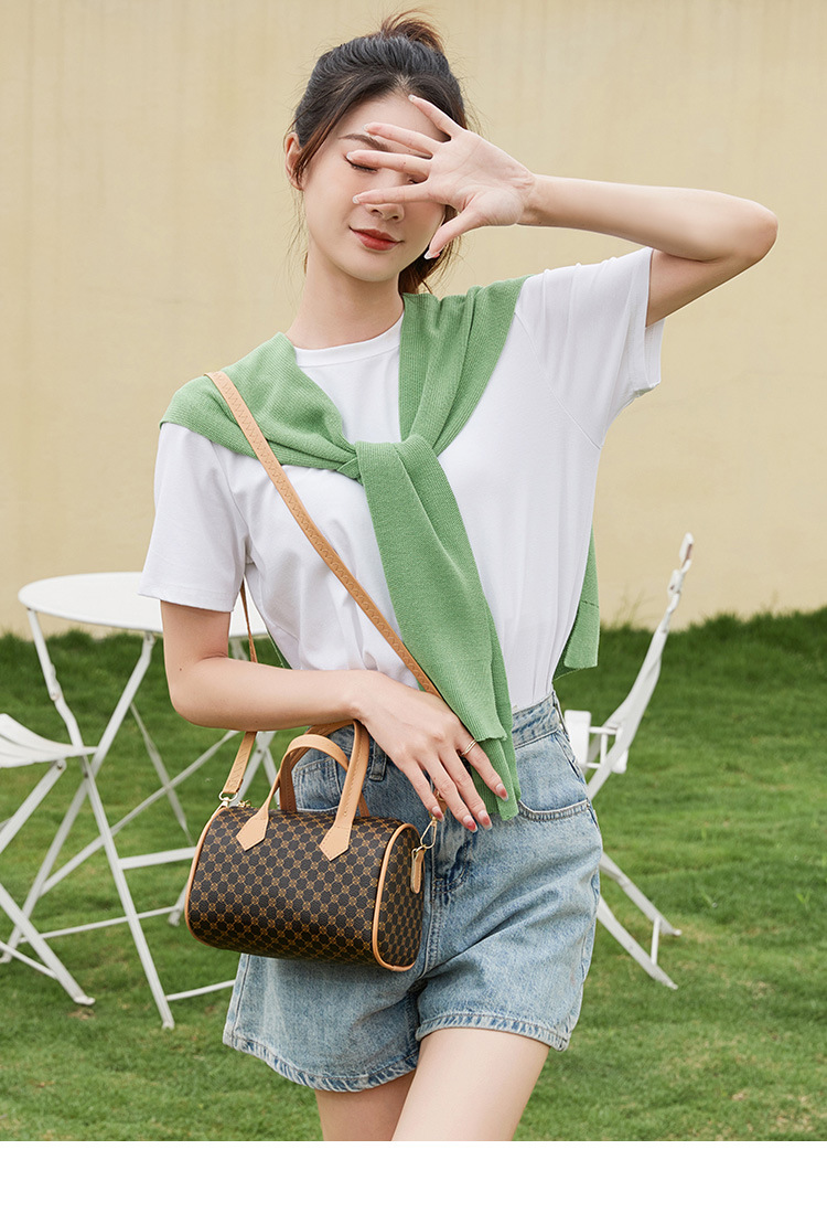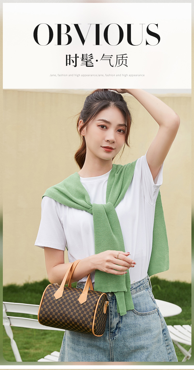 复古撞色印花手提包2023新款波士顿女包手机包单肩斜挎枕头包