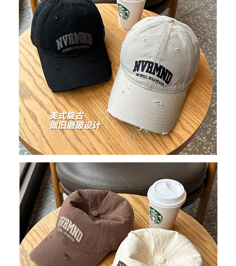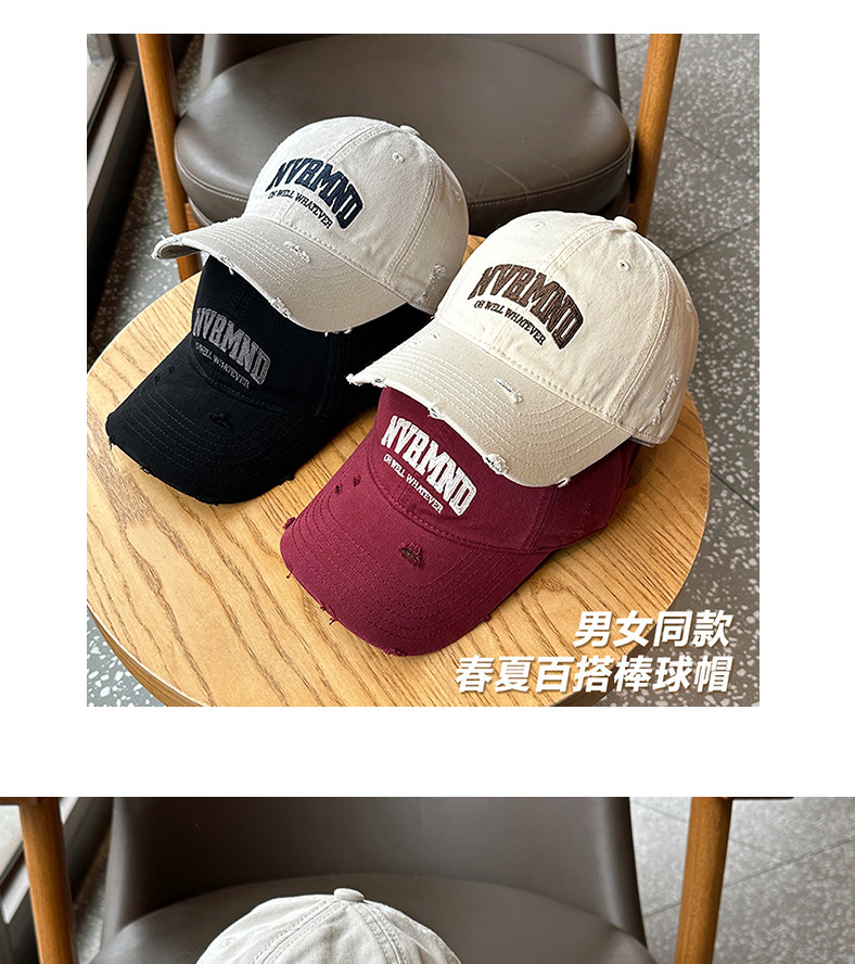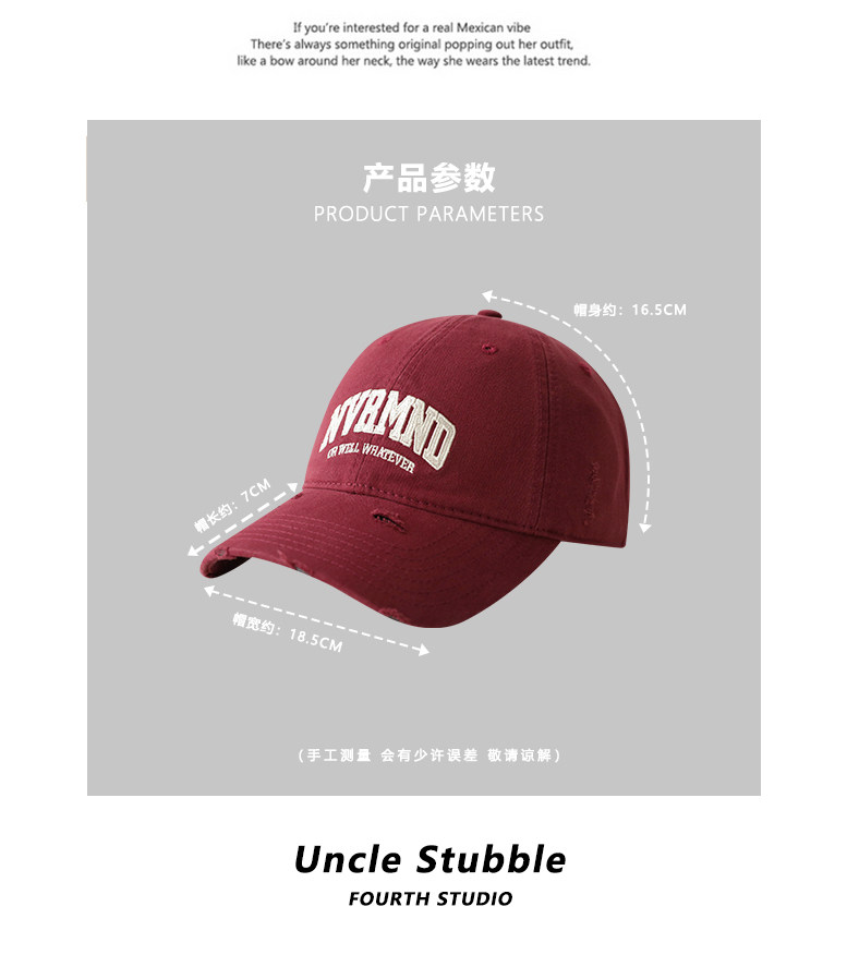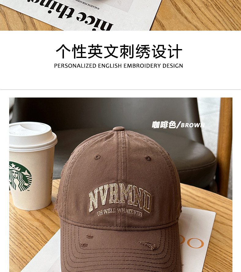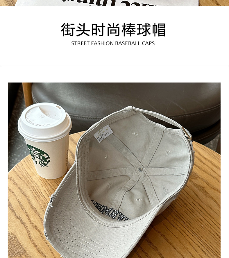 磨破帽子中性百搭四季款纯棉宽檐鸭舌帽软顶棒球帽男女生