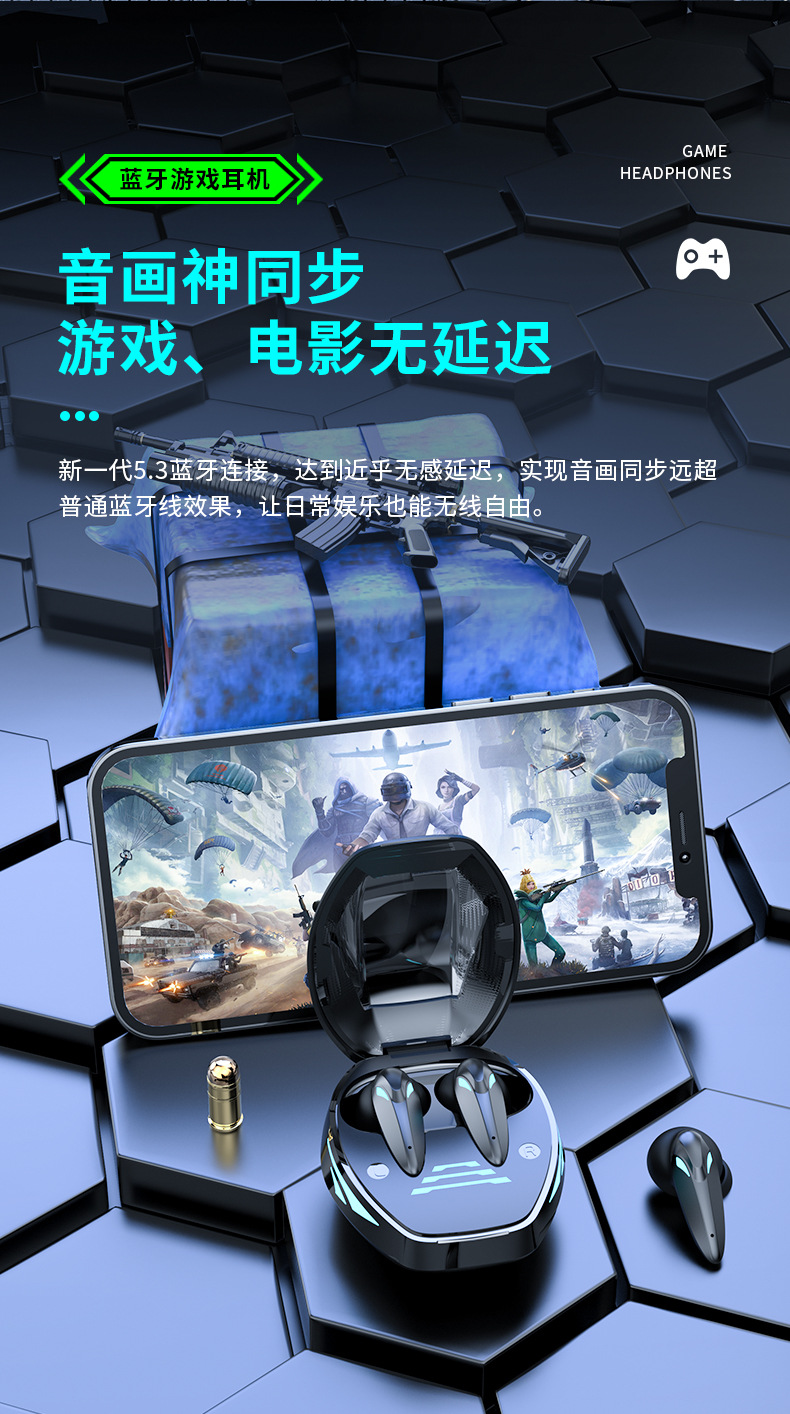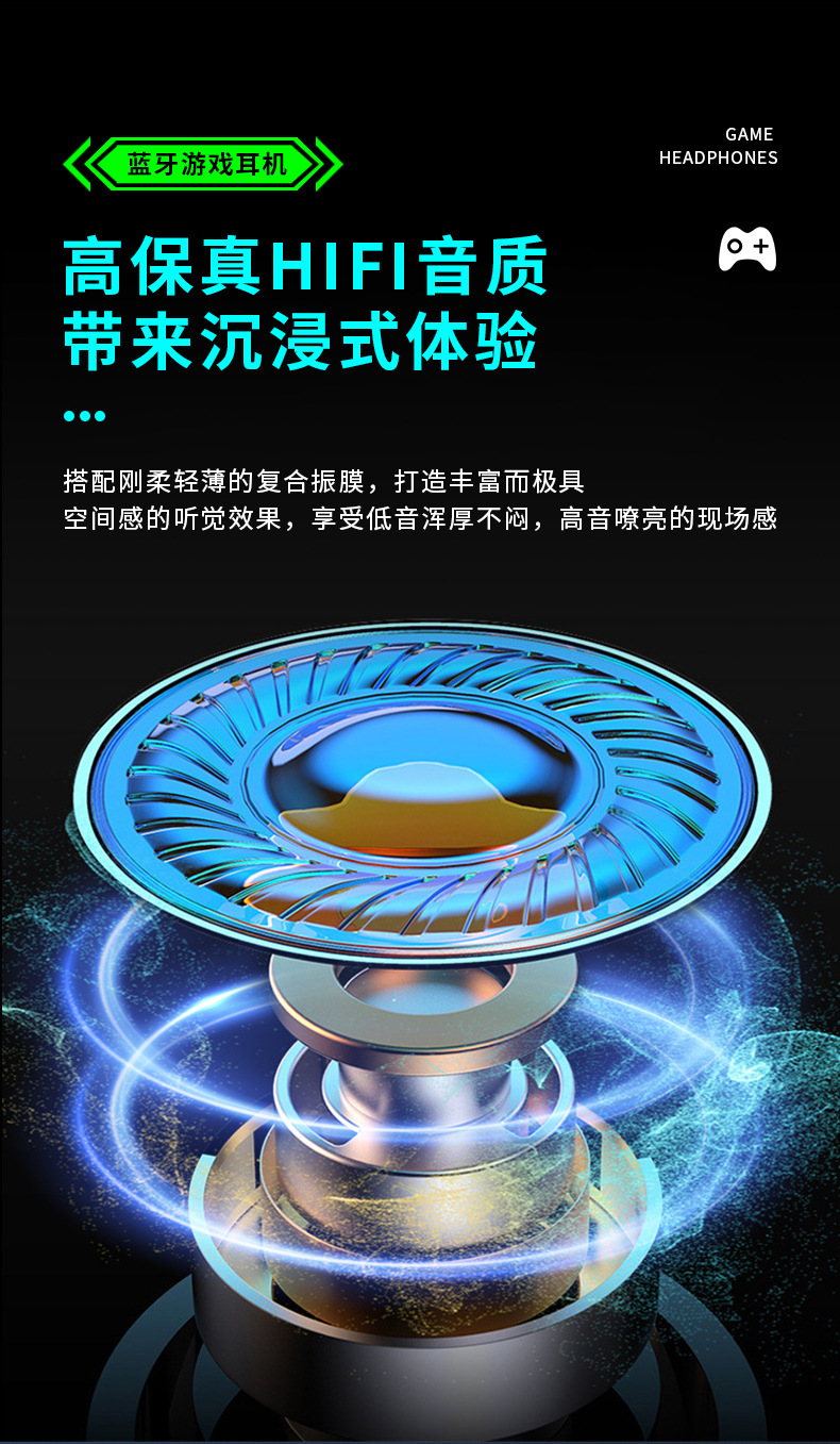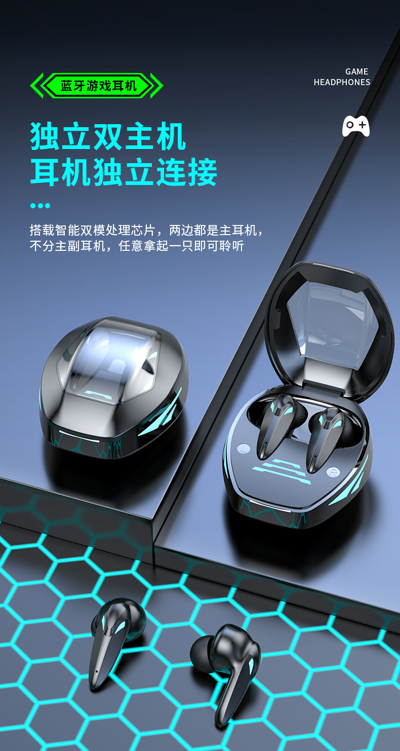 TG09 跨境新款高端黑科技无线入耳式游戏低延迟蓝牙耳机tws对耳
