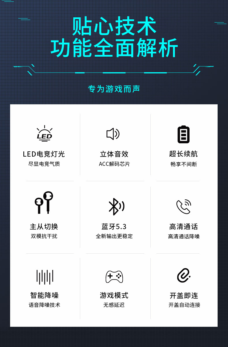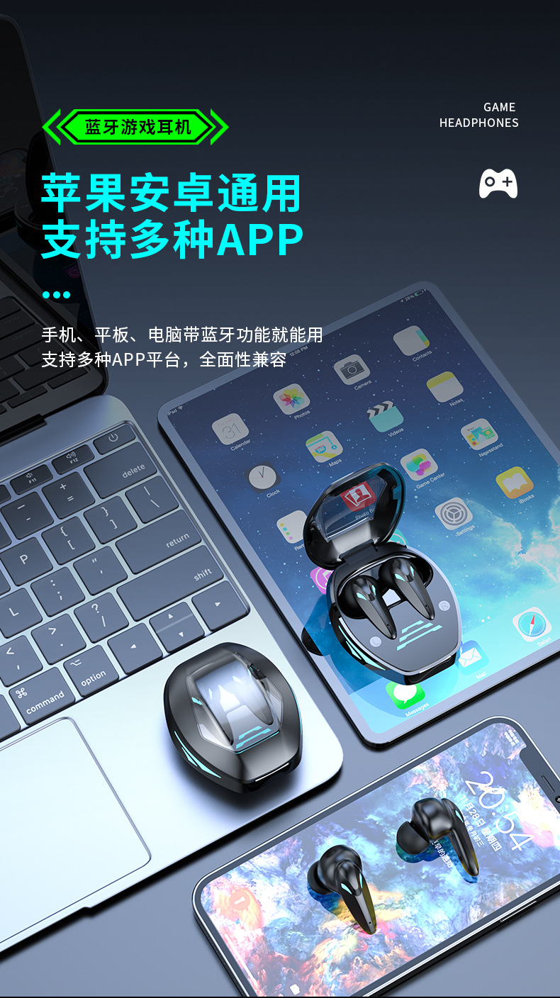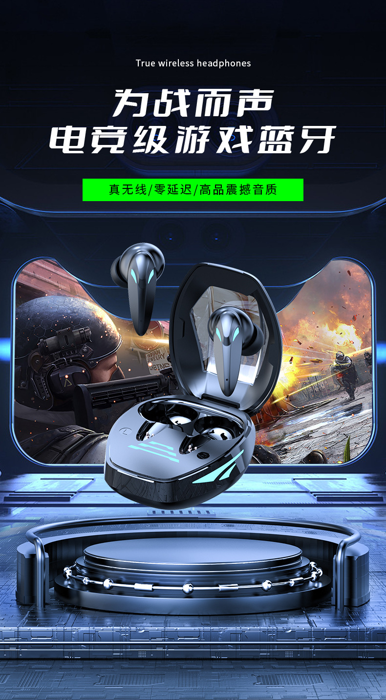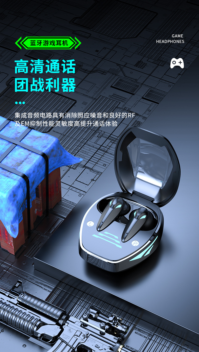 TG09 跨境新款高端黑科技无线入耳式游戏低延迟蓝牙耳机tws对耳