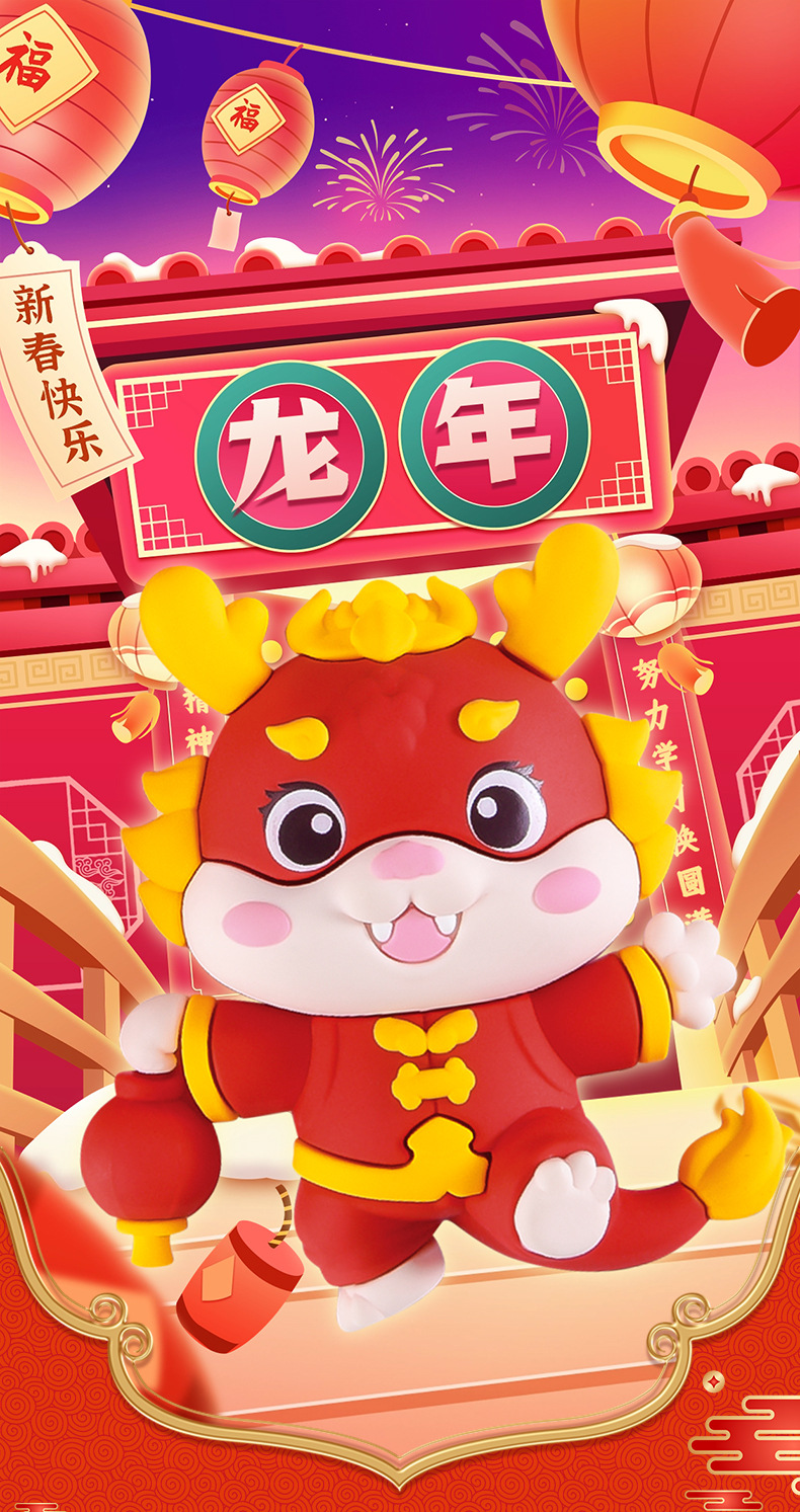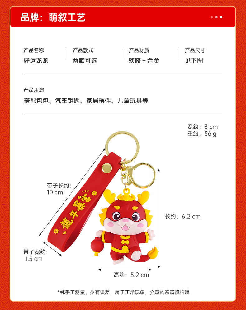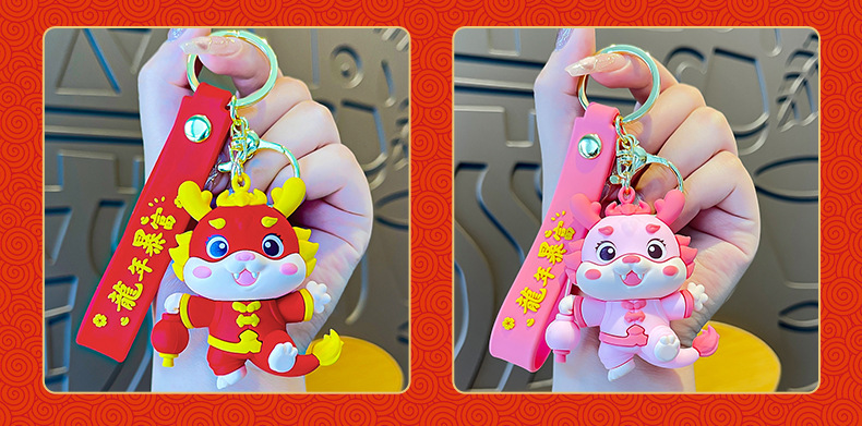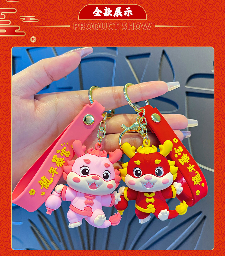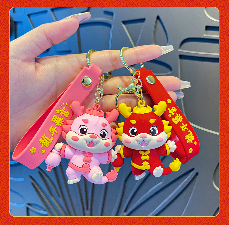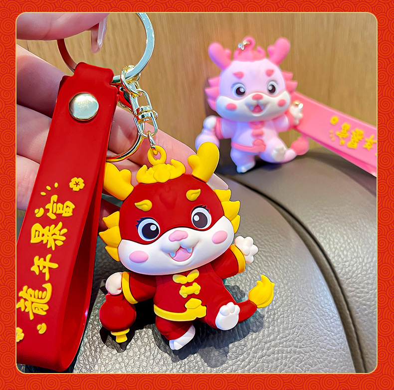 国潮好运龙龙钥匙扣公仔挂件喜庆新年书包挂饰龙年生肖钥匙链批发