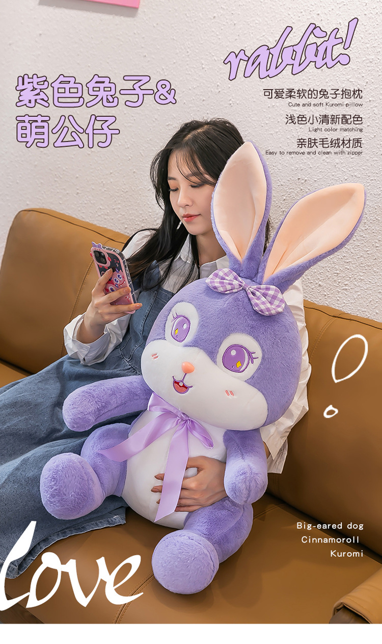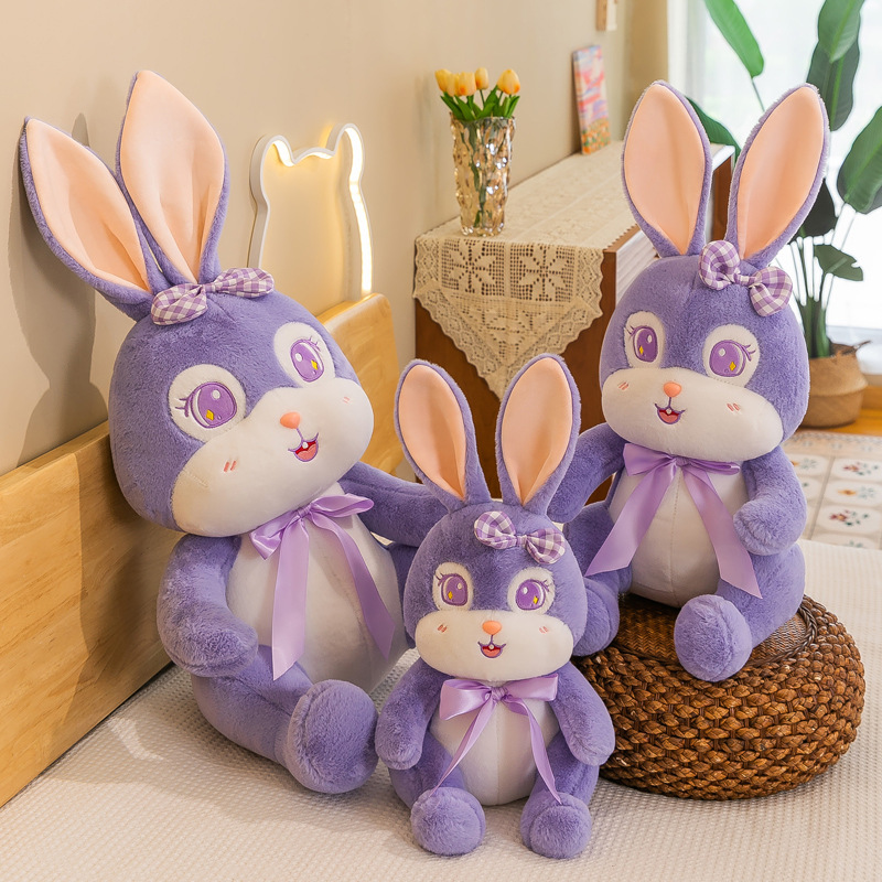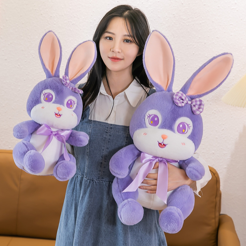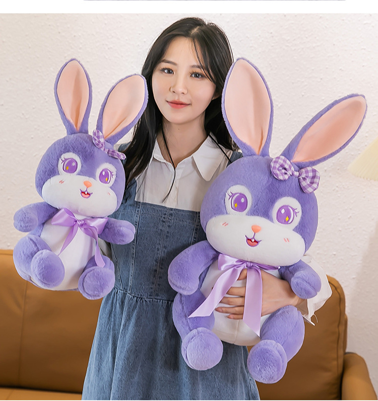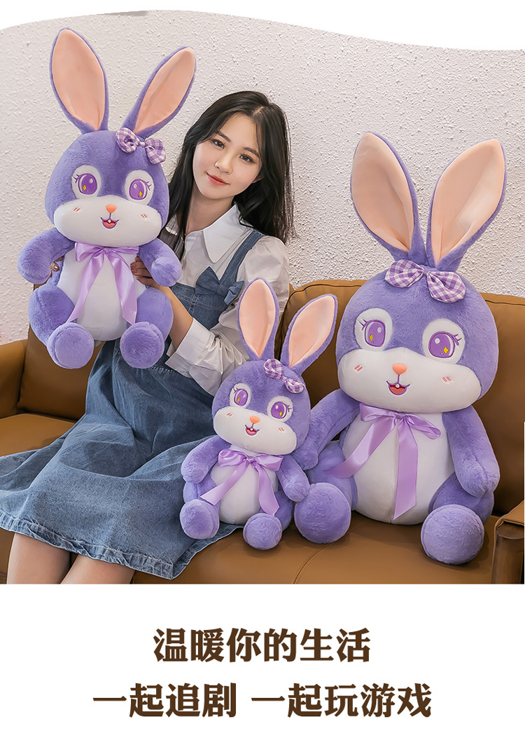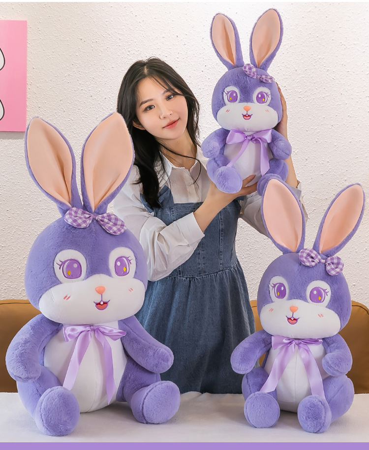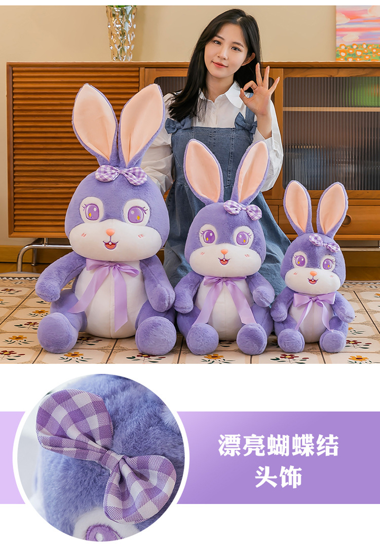 跨境紫色长耳兔毛绒玩具薰衣草兔子公仔玩偶坐款布娃娃抱枕批发