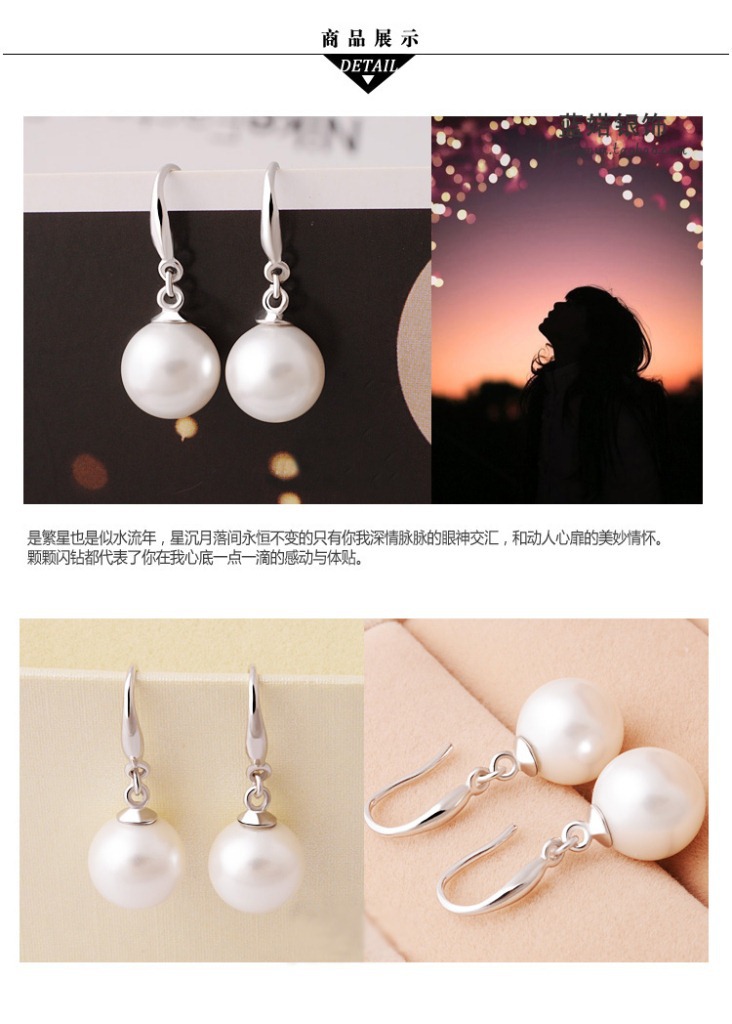 唯华 正圆珍珠镀银耳环耳饰品个性文艺小清新 珍珠简约气质银耳坠