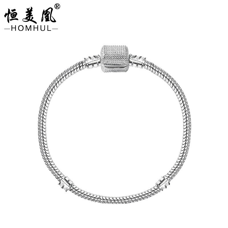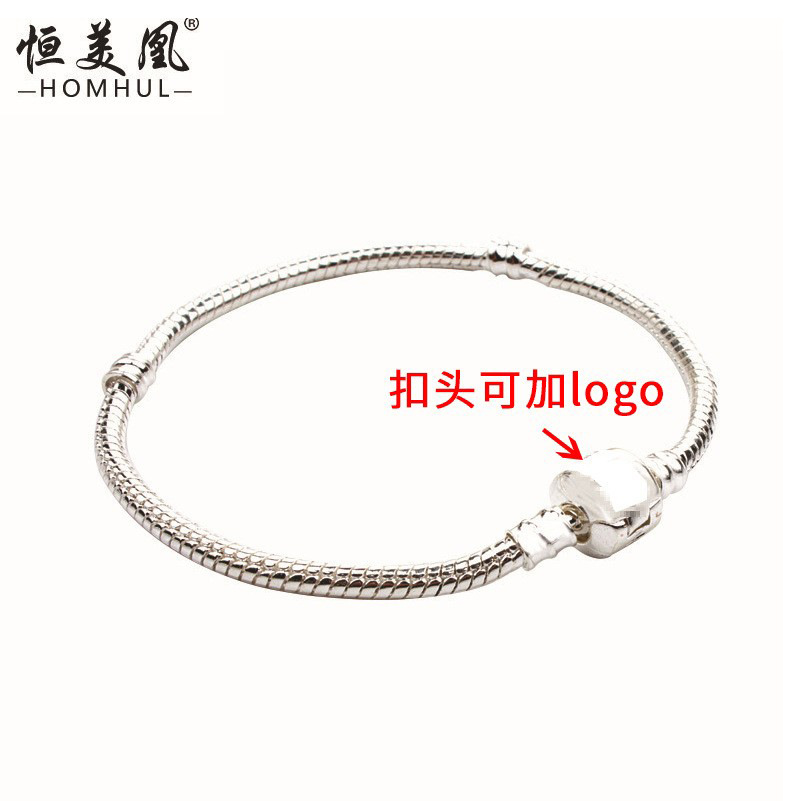 跨境潘家logo小皇冠链子 金色白k简约百搭DIY串珠手镯基础链批发