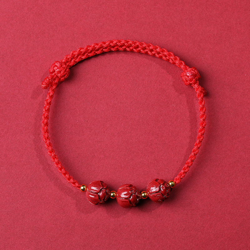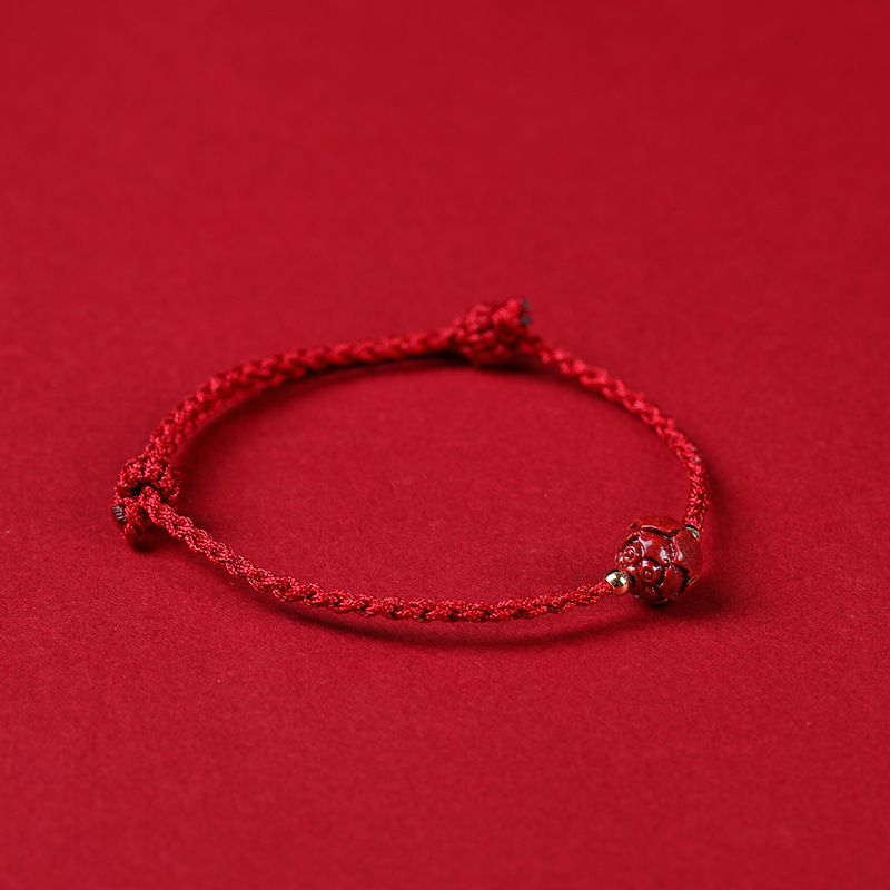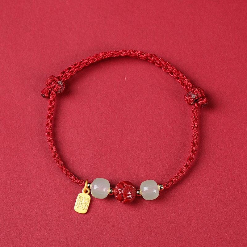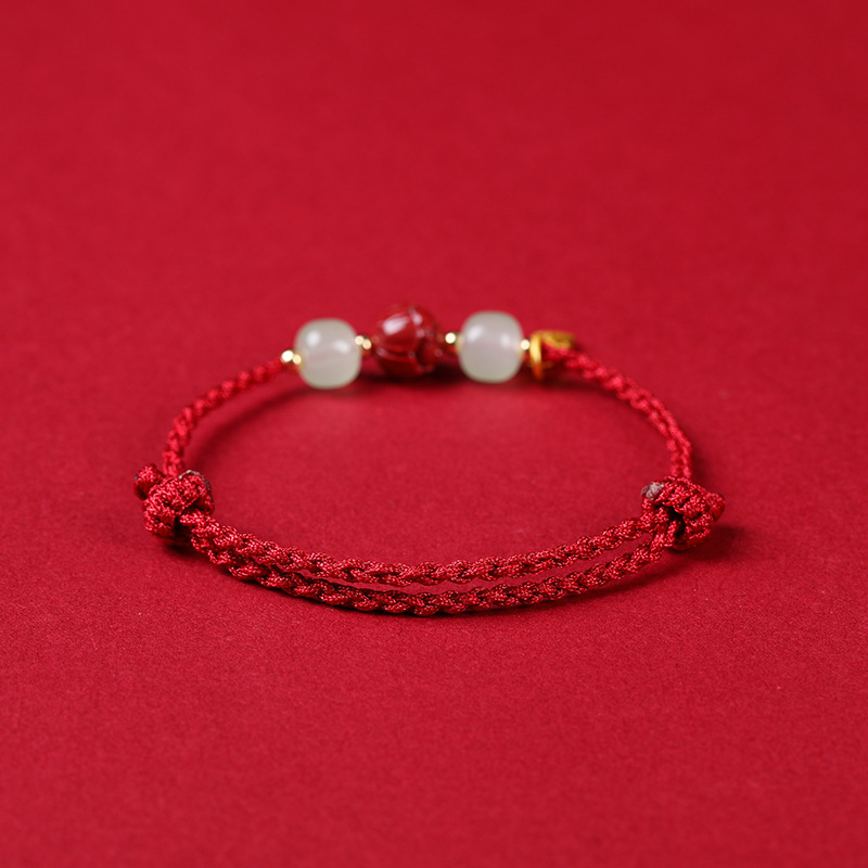 考试上岸手链女本命红绳朱砂和田玉福牌编织手绳高考编织手链