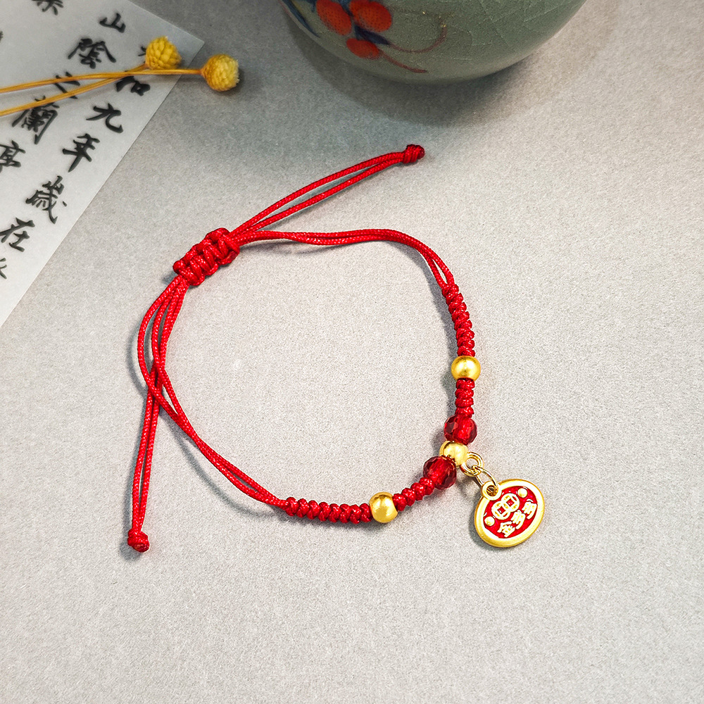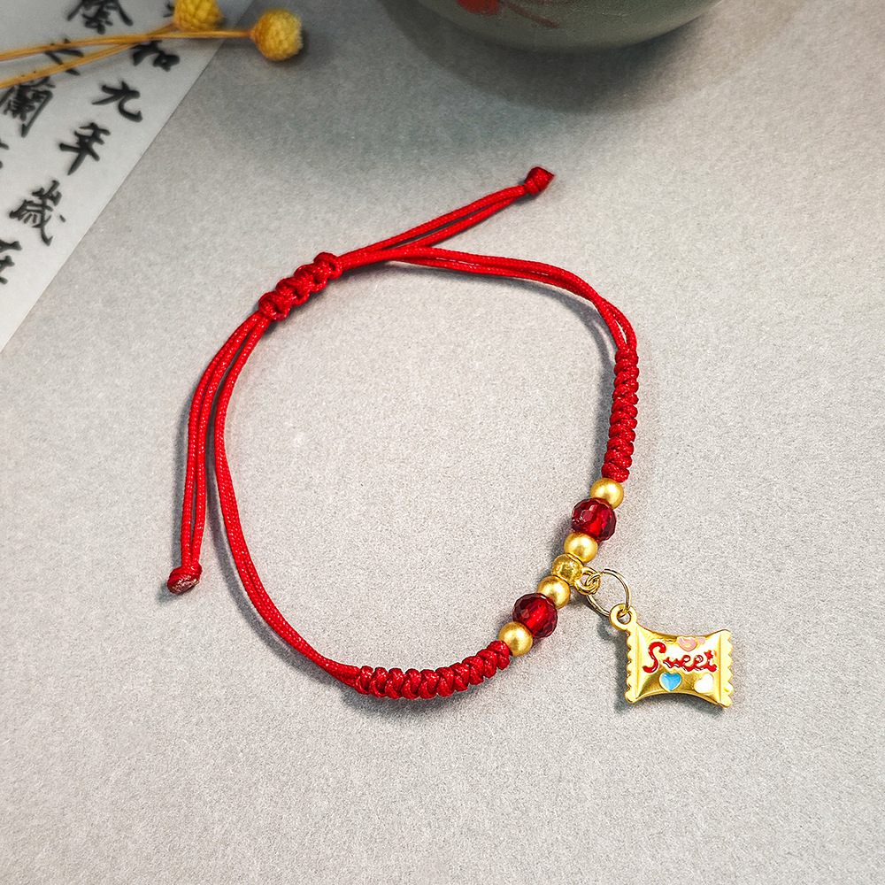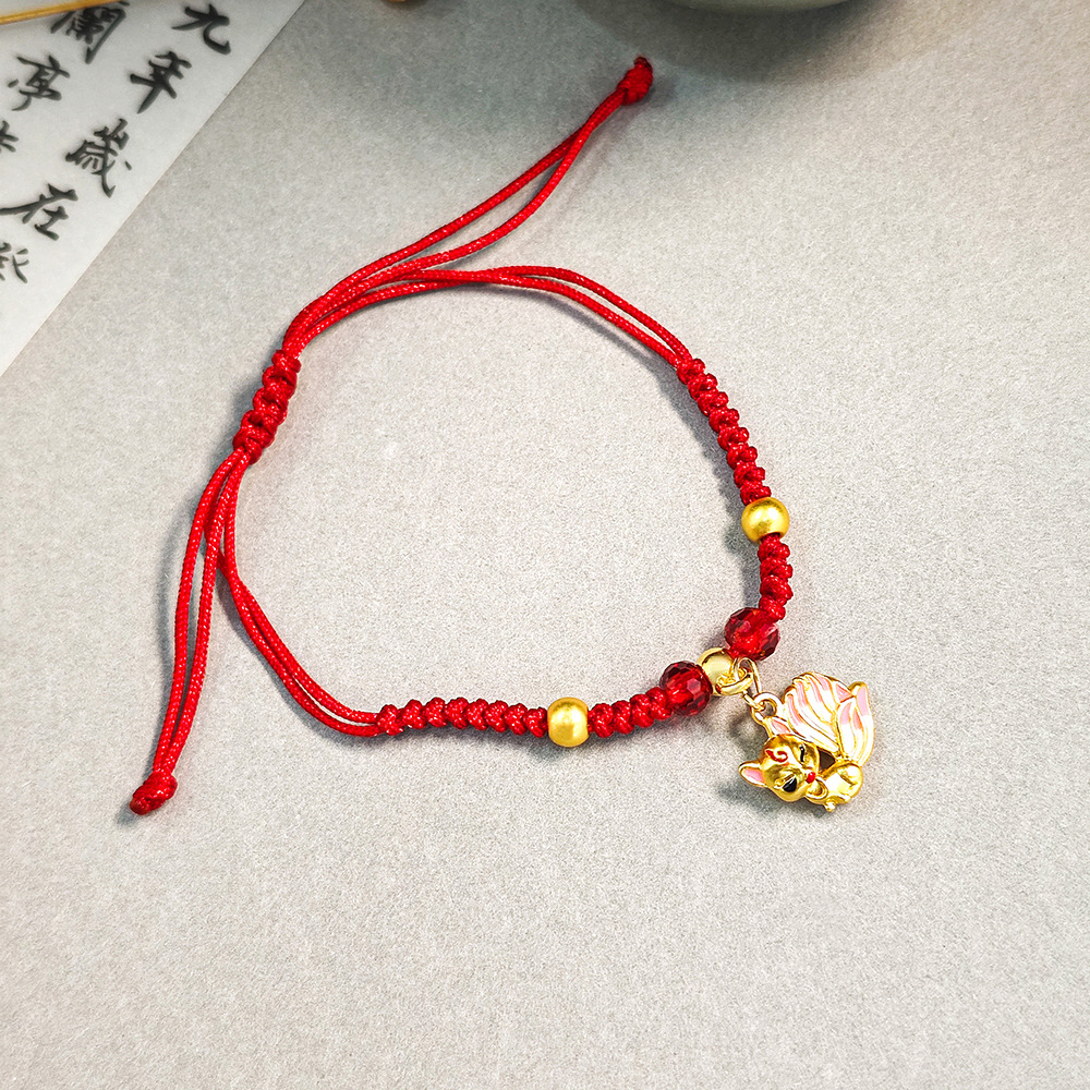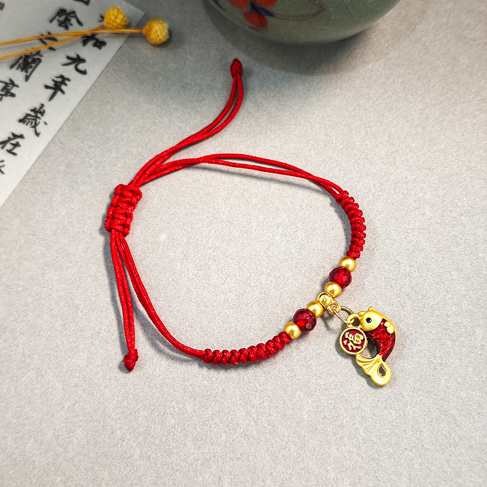 新中式复古糖果金鱼吊坠红色手工编织手绳 舞狮吊坠可调节手链女