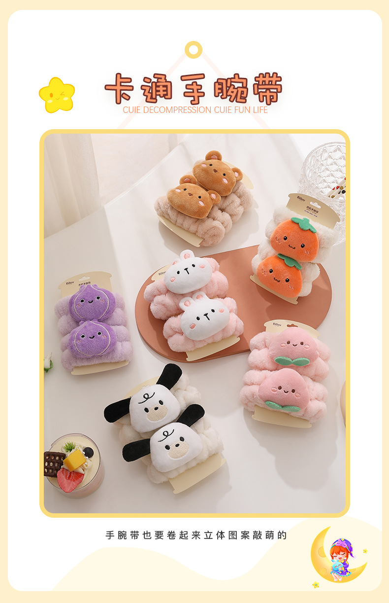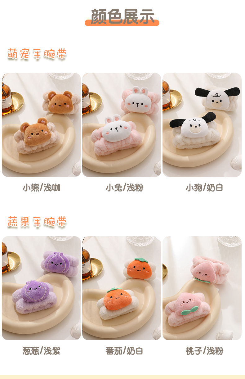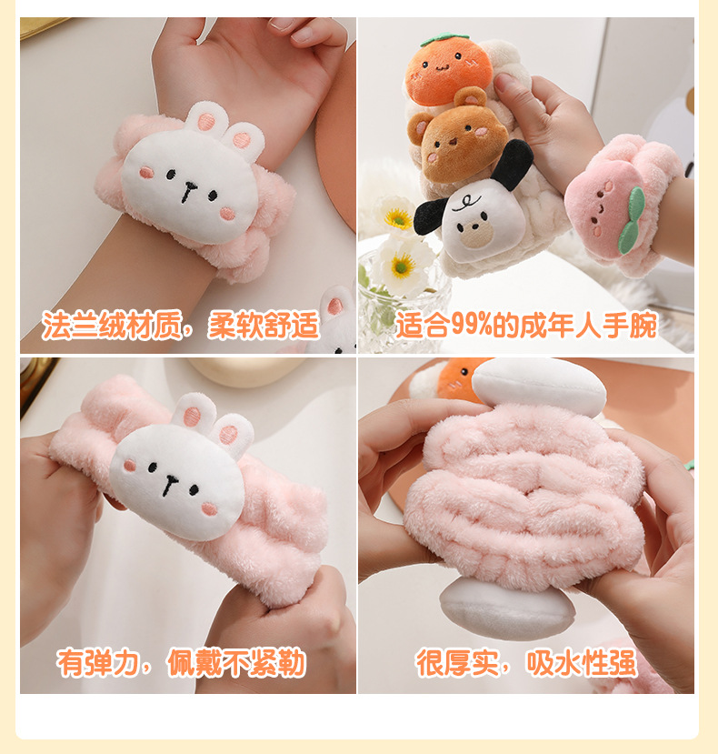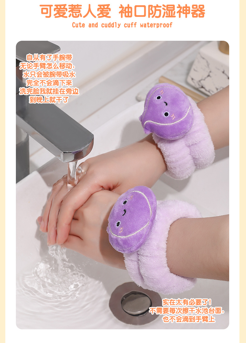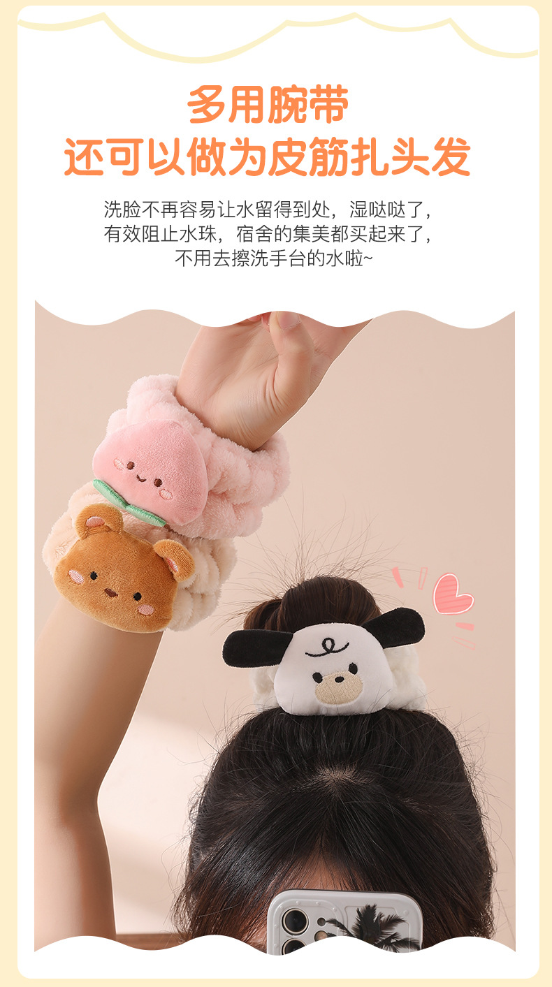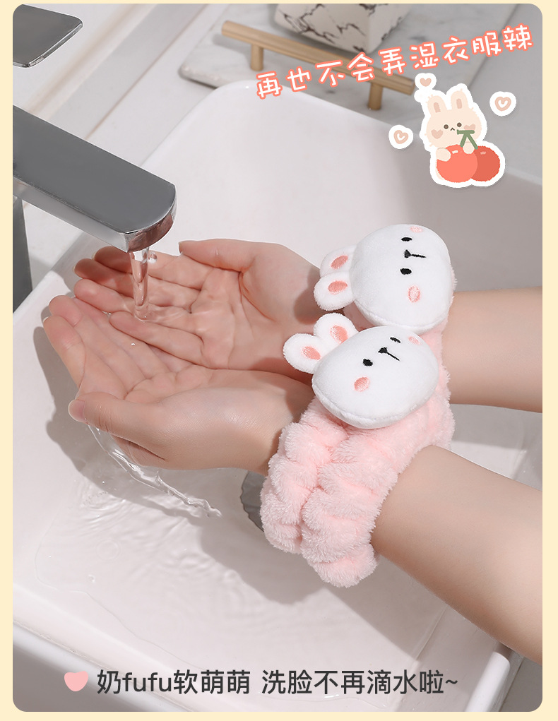 卡通立体小清新洗脸手腕带防侧漏防湿吸水护腕洗漱发箍防脱落两用