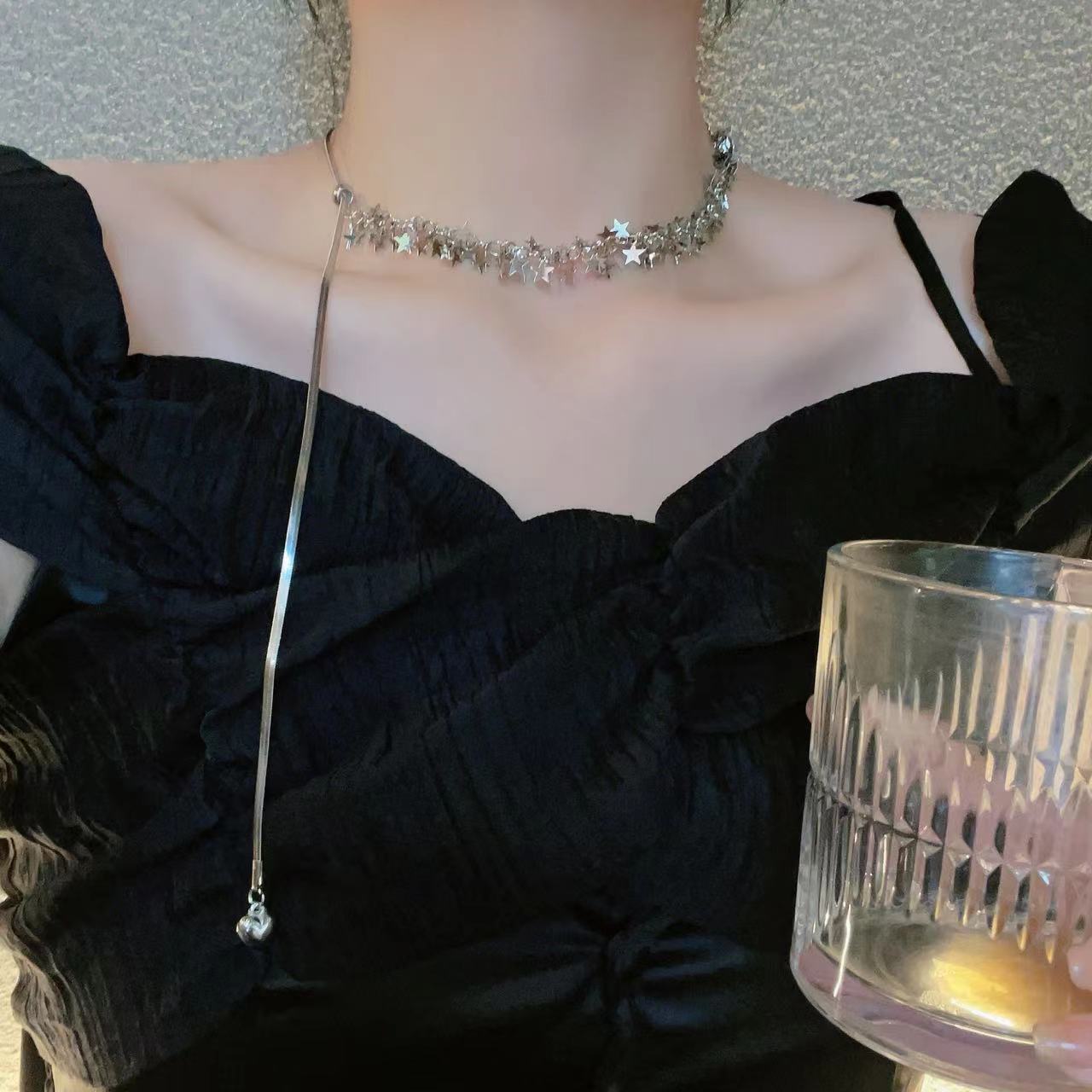 可抽拉银色蝴蝶流苏项链小众设计时尚毛衣链高级感气质百搭锁骨链