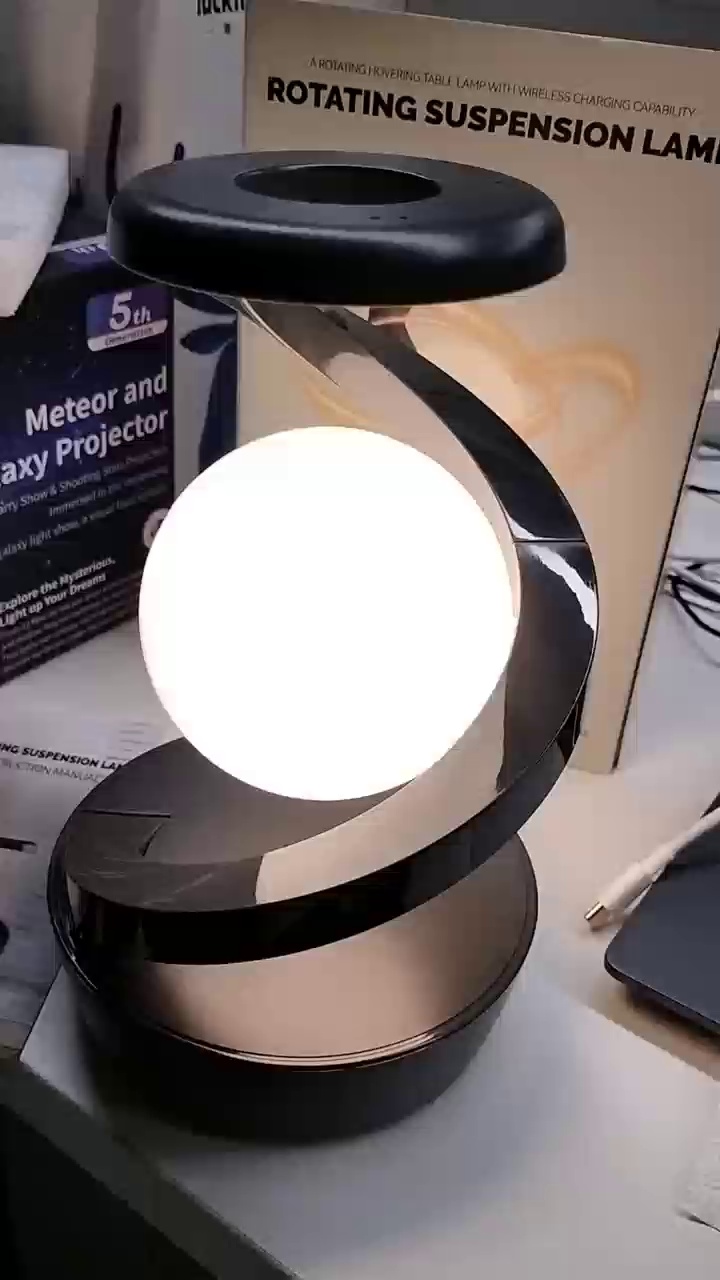 跨境旋转悬浮无线充台灯手机无线充电RGB氛围小夜灯