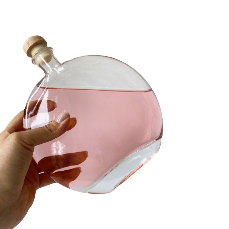 500ml扁圆透明玻璃酒瓶250ml白酒瓶玻璃空瓶软木塞密封洋酒瓶