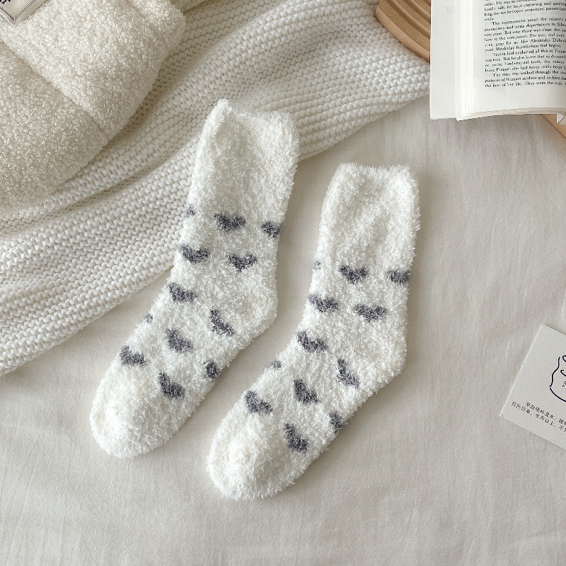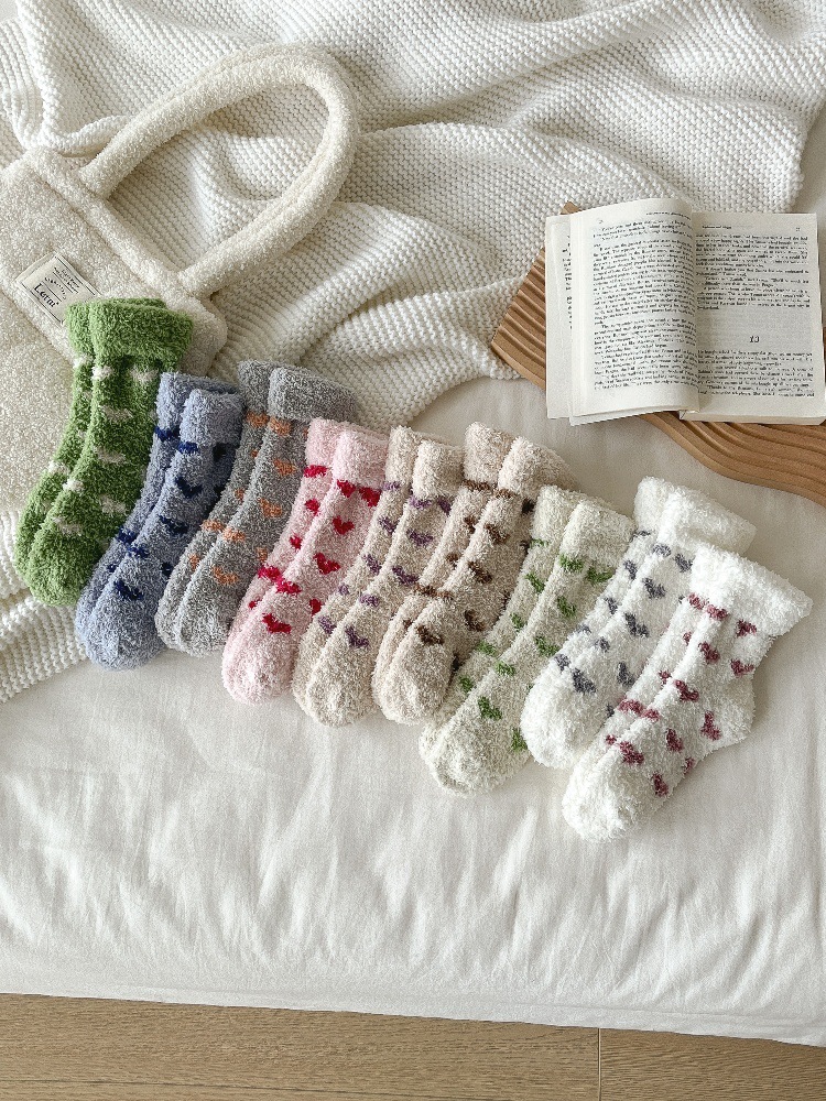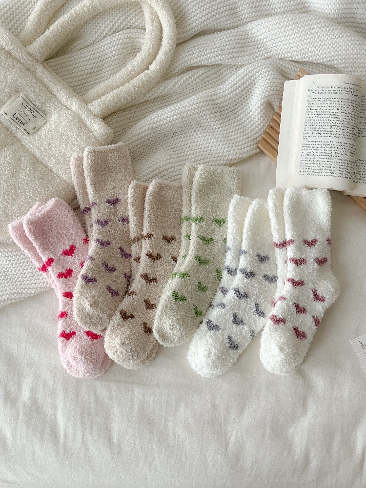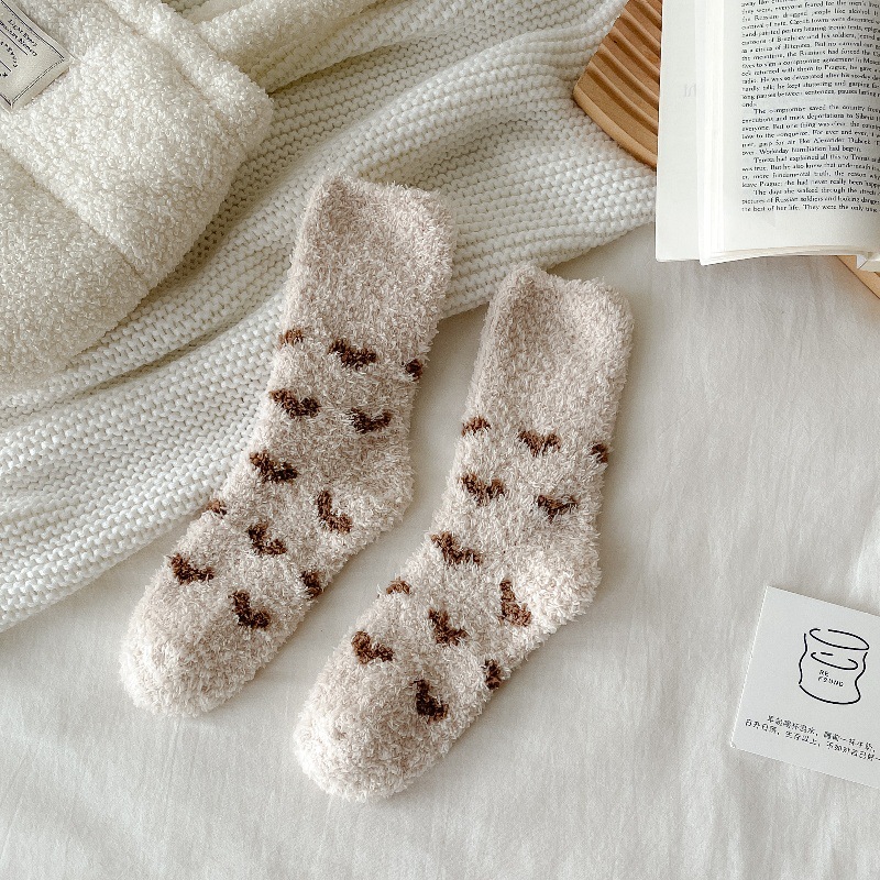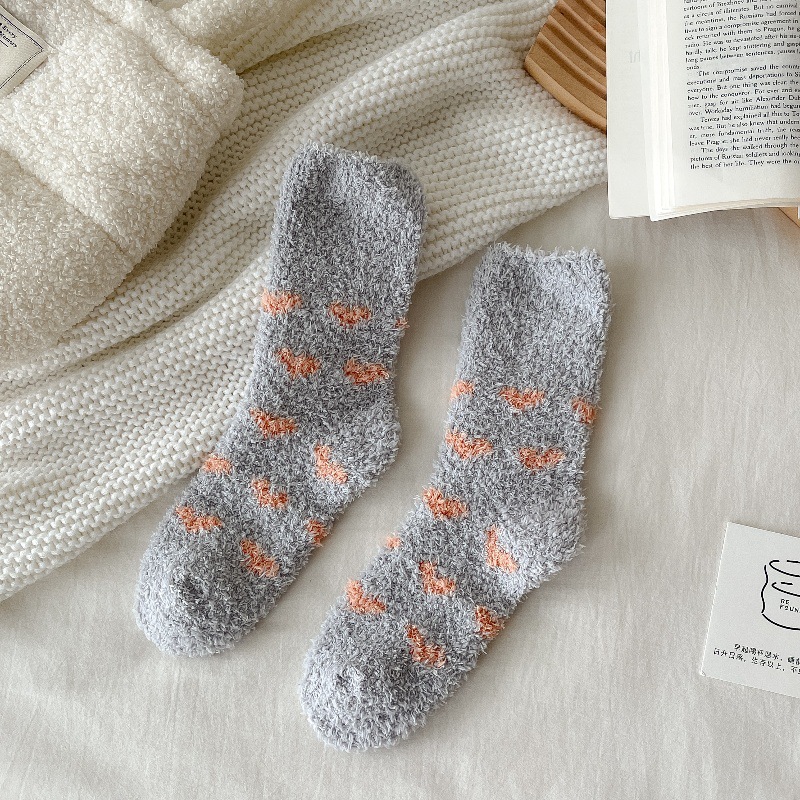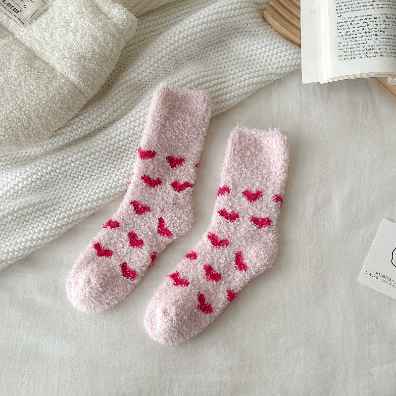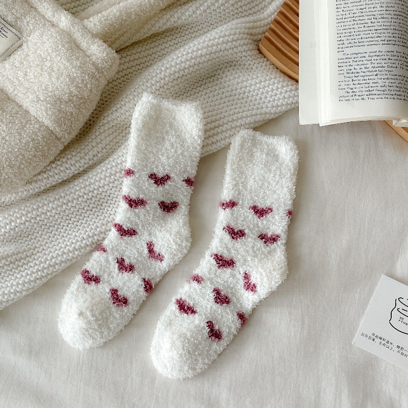 7A珊瑚绒袜子女日系爱心地板袜秋冬保暖加厚家居睡眠袜跨境