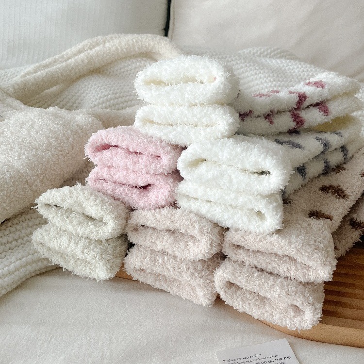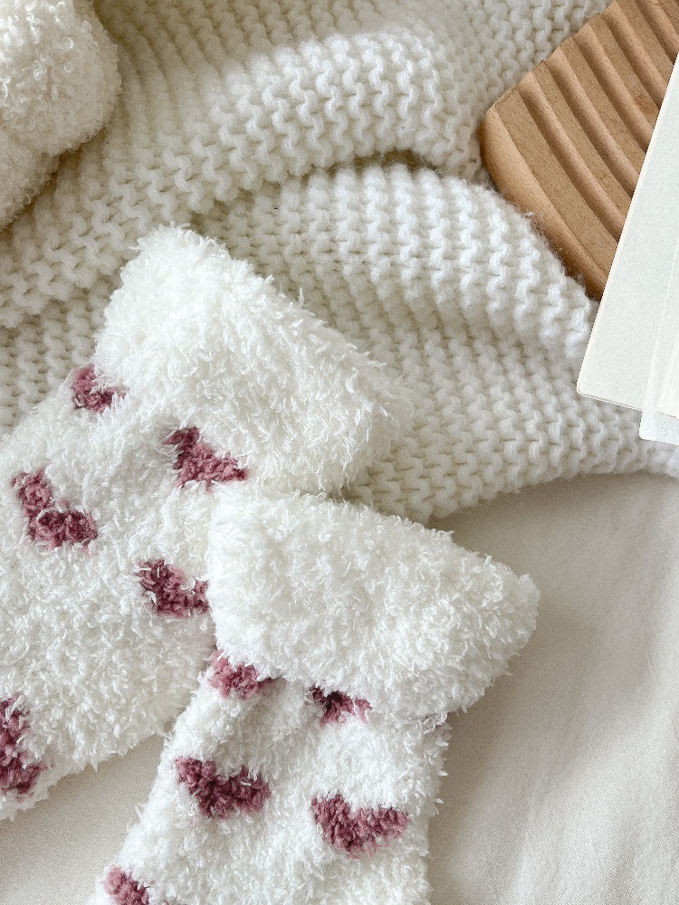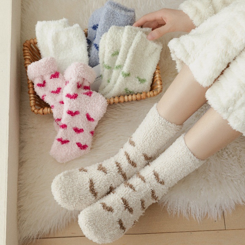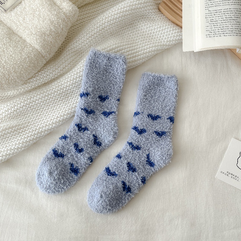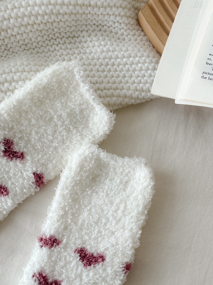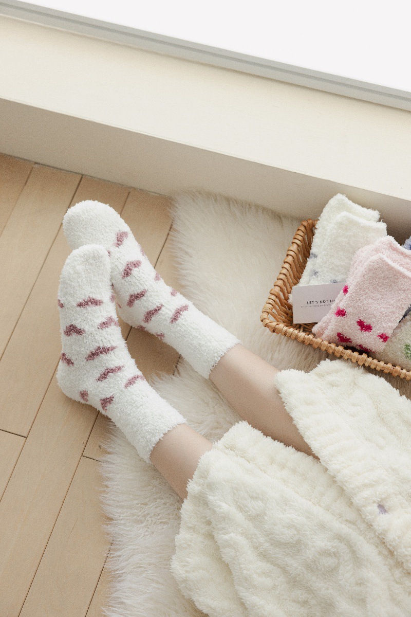7A珊瑚绒袜子女日系爱心地板袜秋冬保暖加厚家居睡眠袜跨境