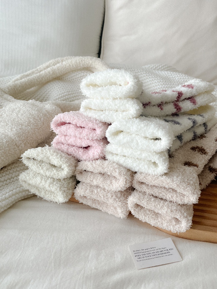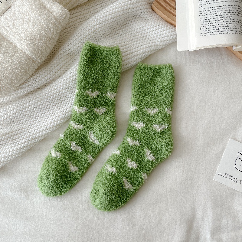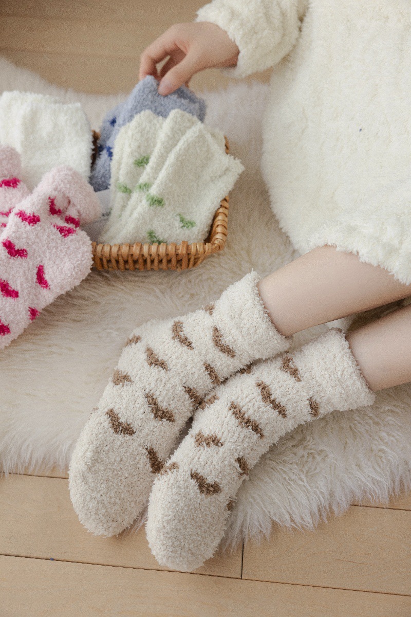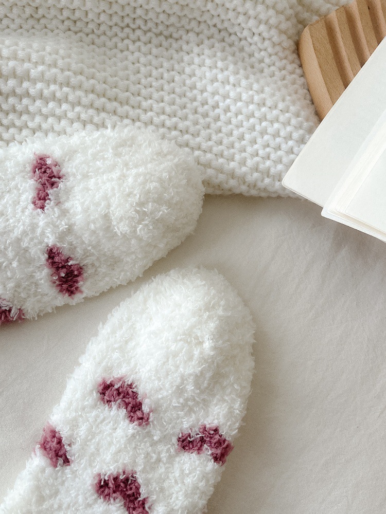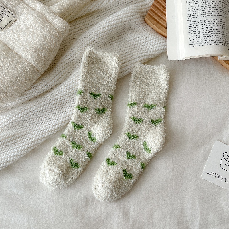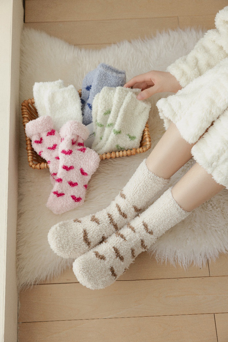 7A珊瑚绒袜子女日系爱心地板袜秋冬保暖加厚家居睡眠袜跨境