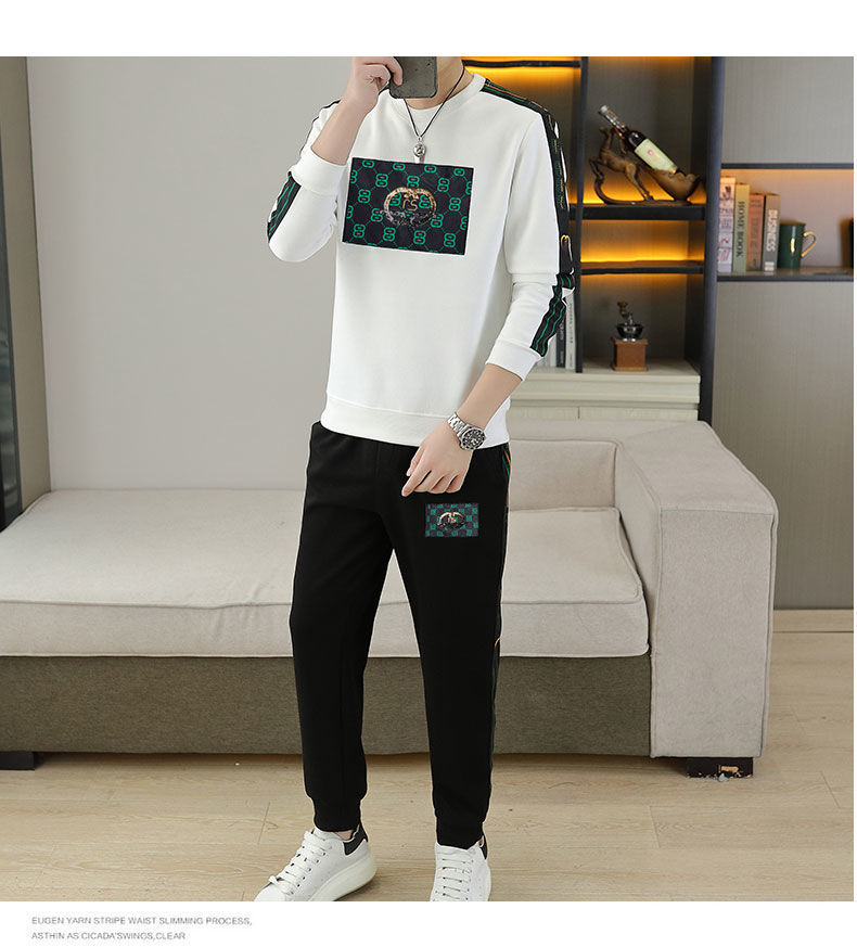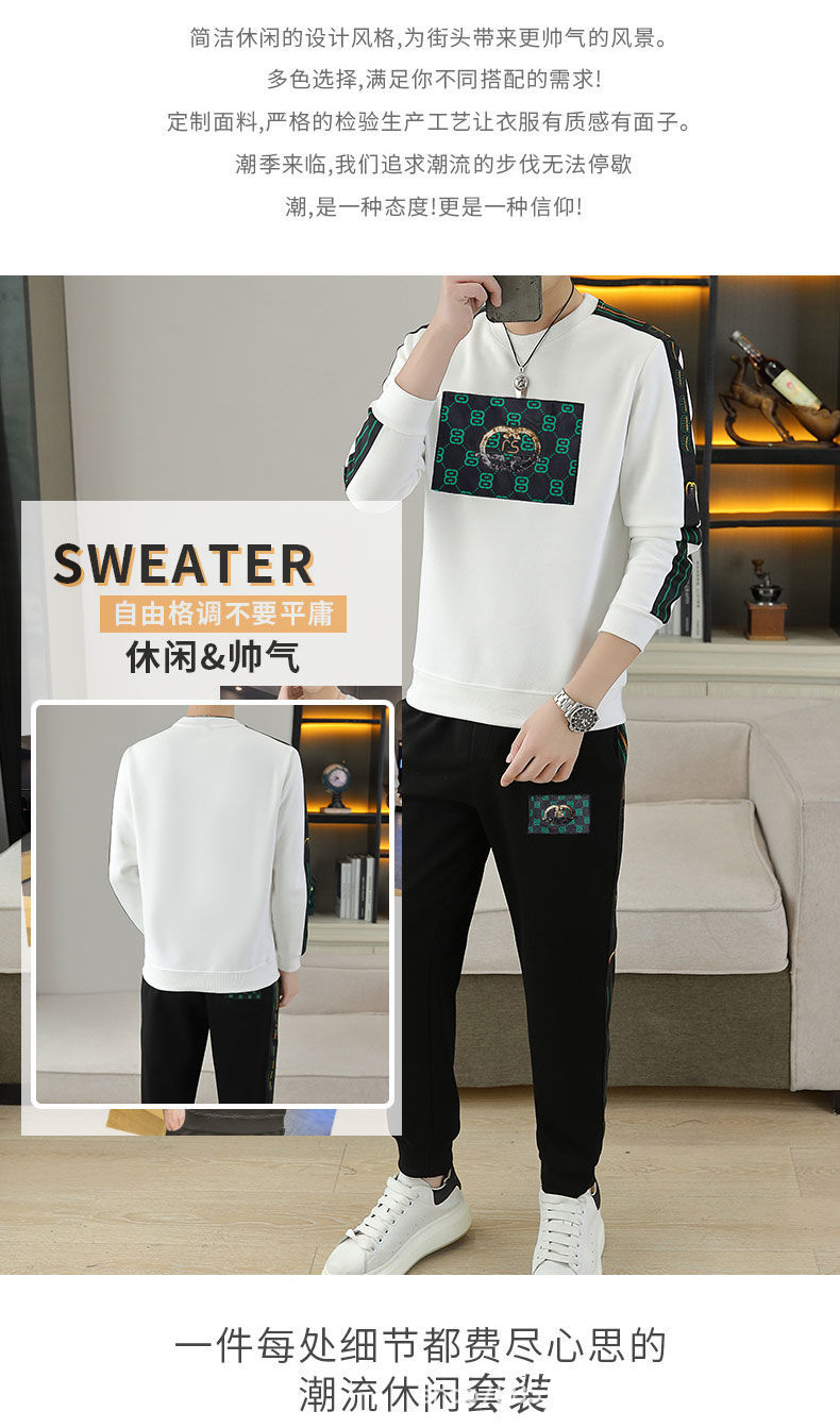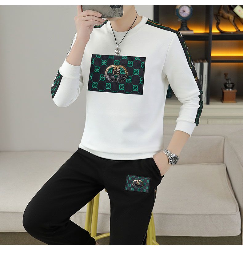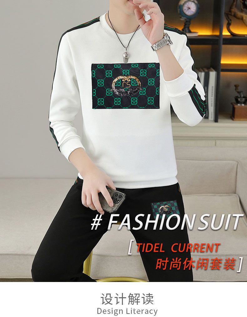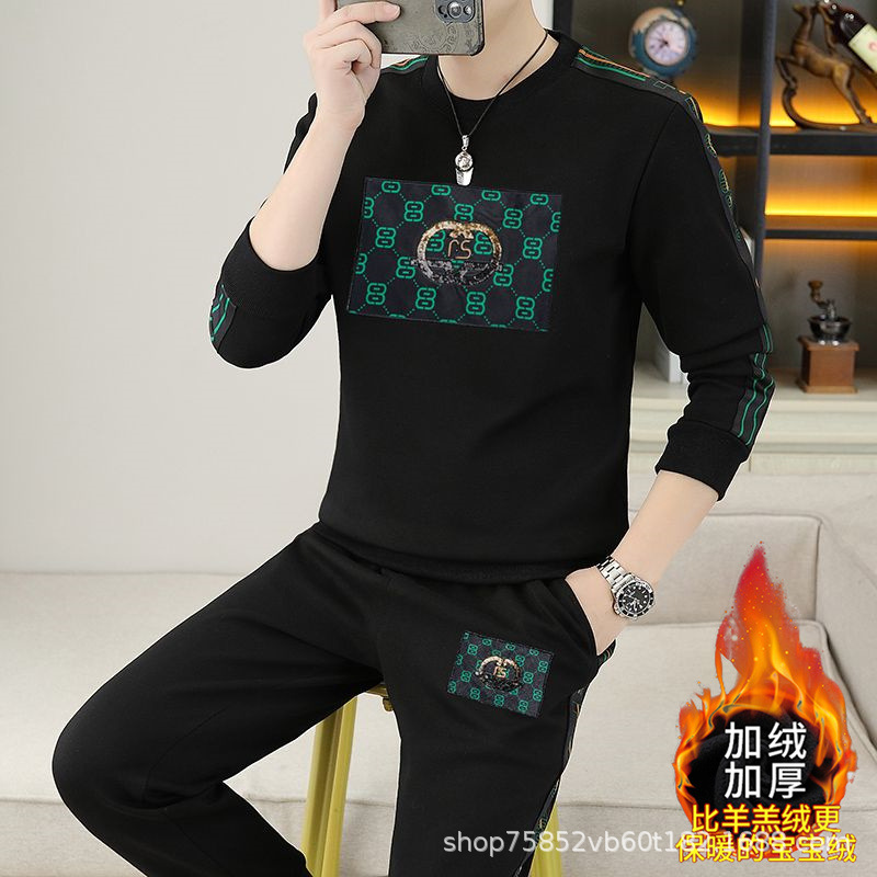 套装男秋冬季2024新款圆领卫衣长裤全套潮牌欧版加绒休闲运动两件