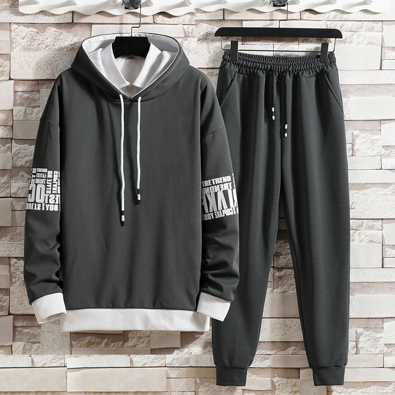 休闲套装男潮流男士套头卫衣连帽长袖秋冬季一套搭配百搭运动长裤