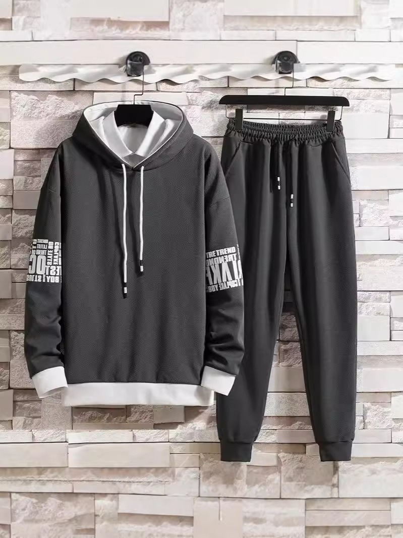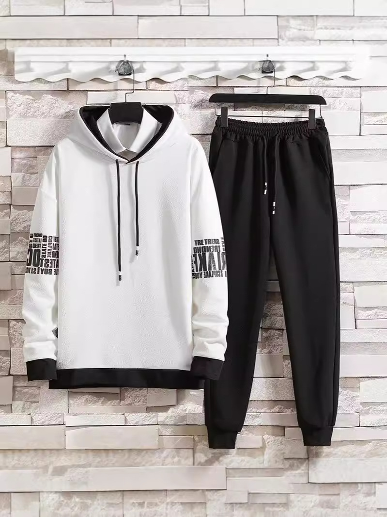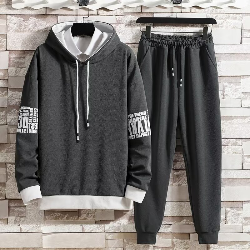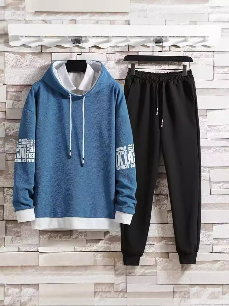 连帽休闲裤两件装新款男士2024潮帽衫卫衣运动套装秋装蚂蚁布韩版