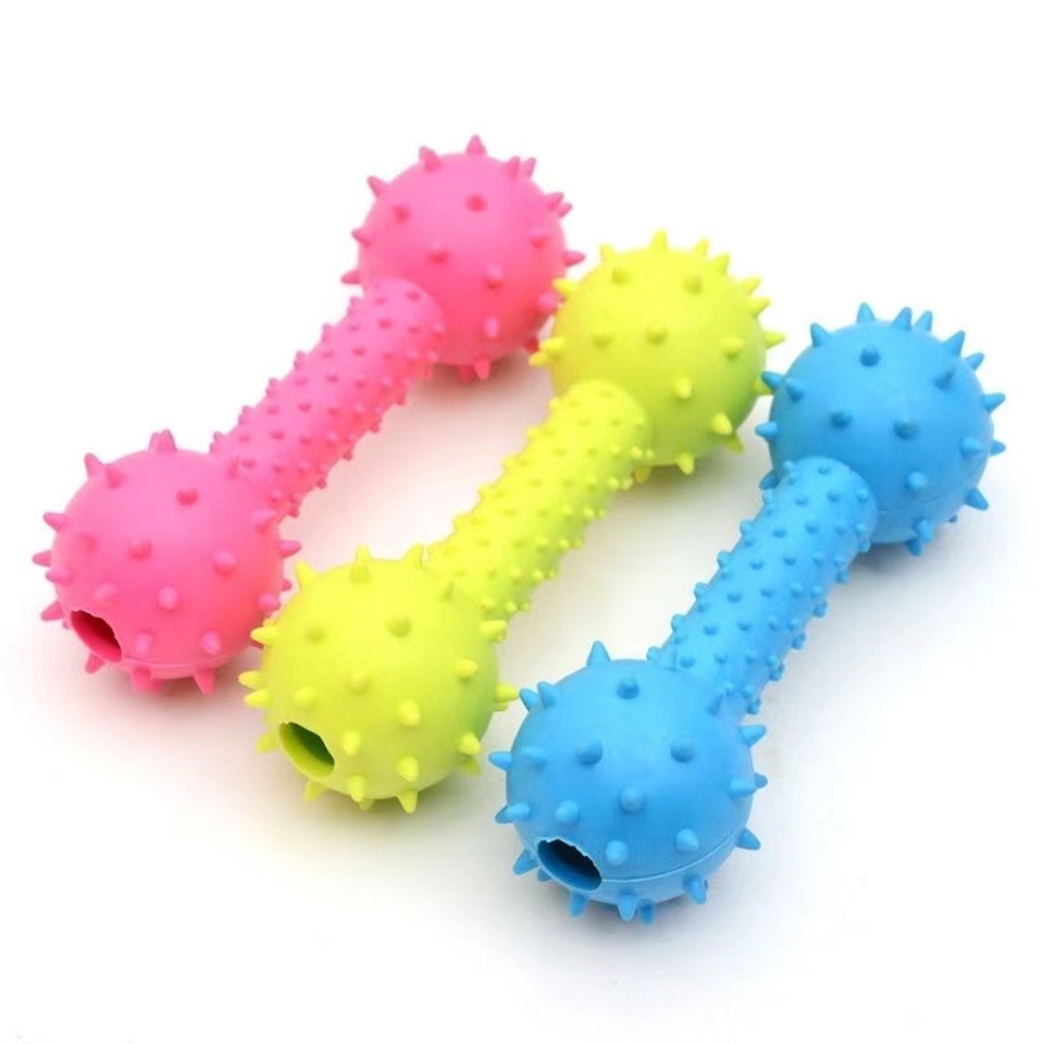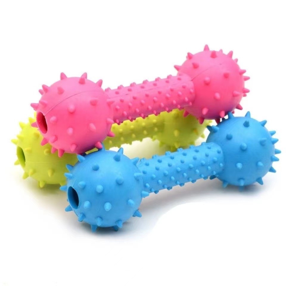 狗狗玩具糖果色玩具耐咬TPR橡胶训犬用品带刺杠铃洁齿狗狗玩具
