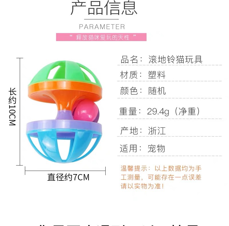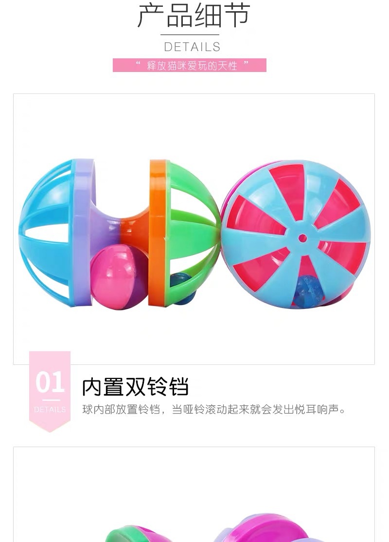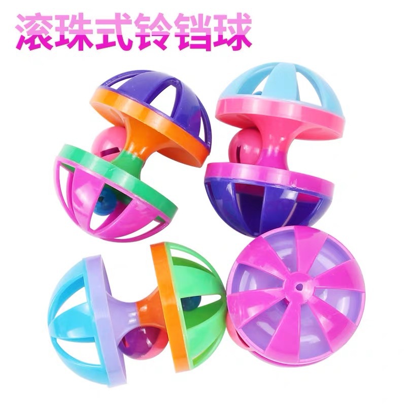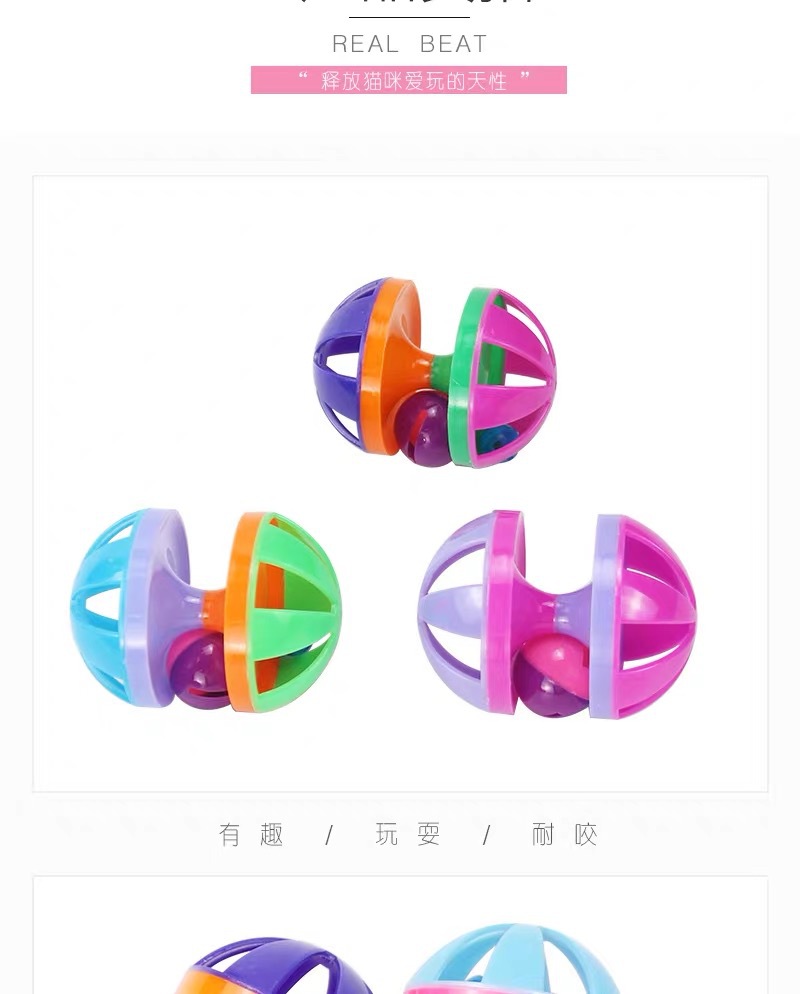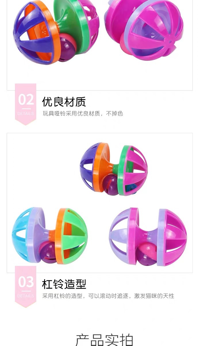 猫玩具撞色发声哑铃猫咪塑料铃铛滚珠玩具球幼猫逗趣自嗨宠物用品