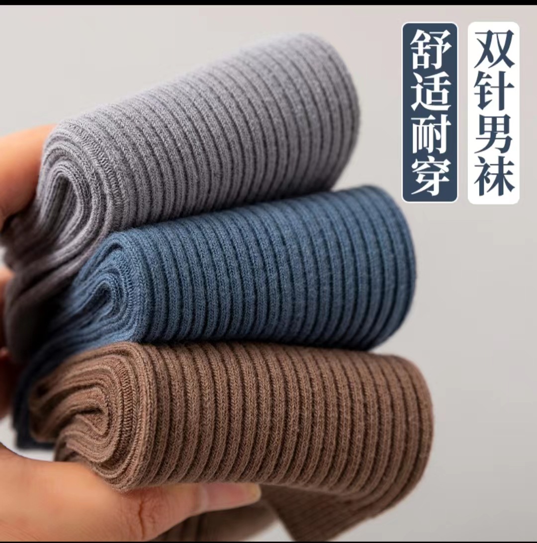 海怡娜纯棉袜子男中筒袜秋冬加厚男专业防臭纯色保暖双针商务全棉