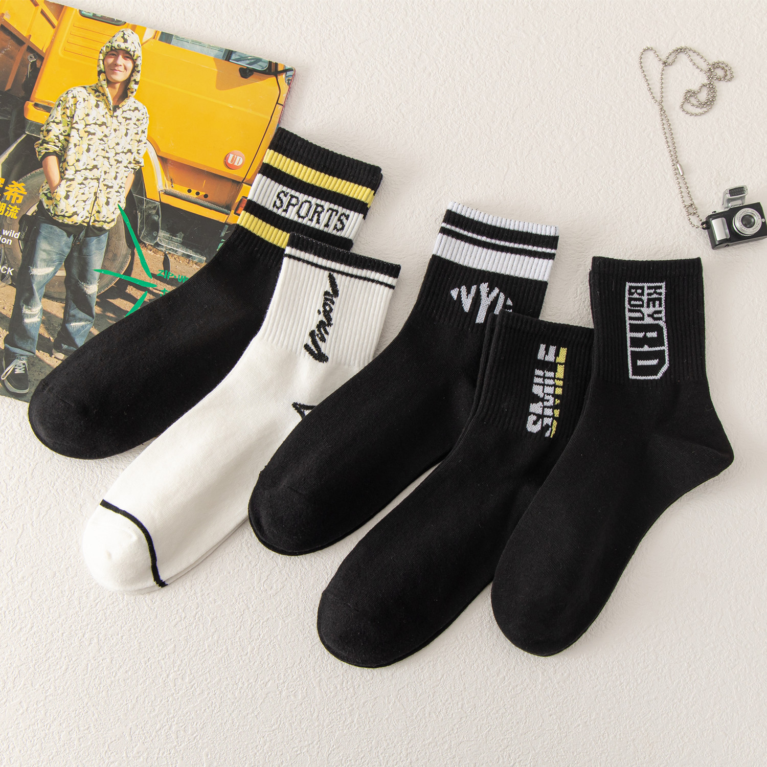 新品秋冬九行运动袜子男士中筒袜棉袜长筒篮球袜嘻哈字母潮袜批发