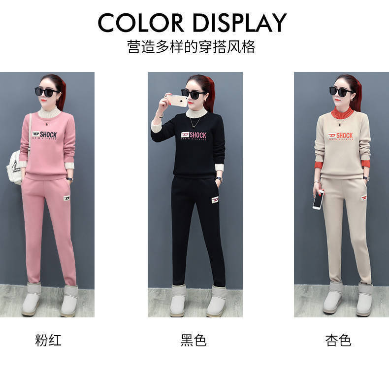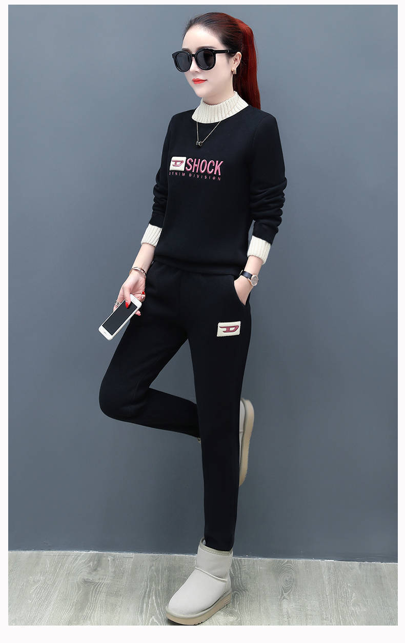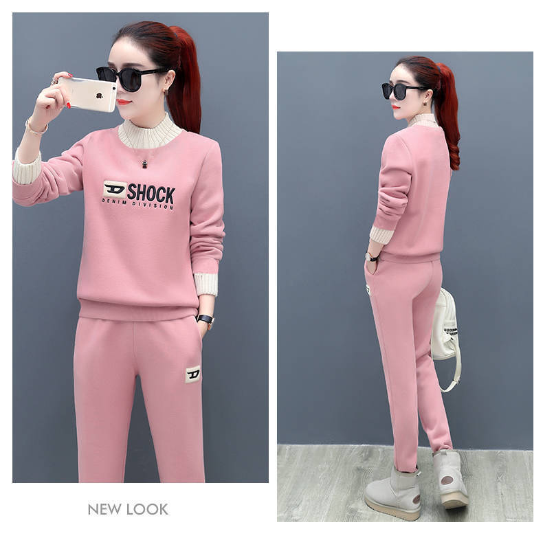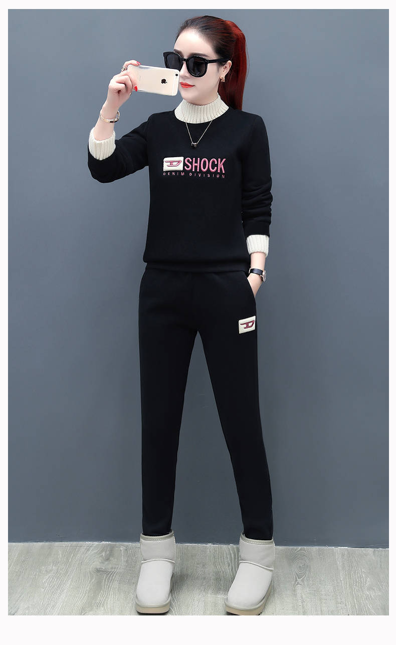 加绒加厚休闲运动套装女2024冬装新款印花卫衣保暖裤显瘦两件套潮