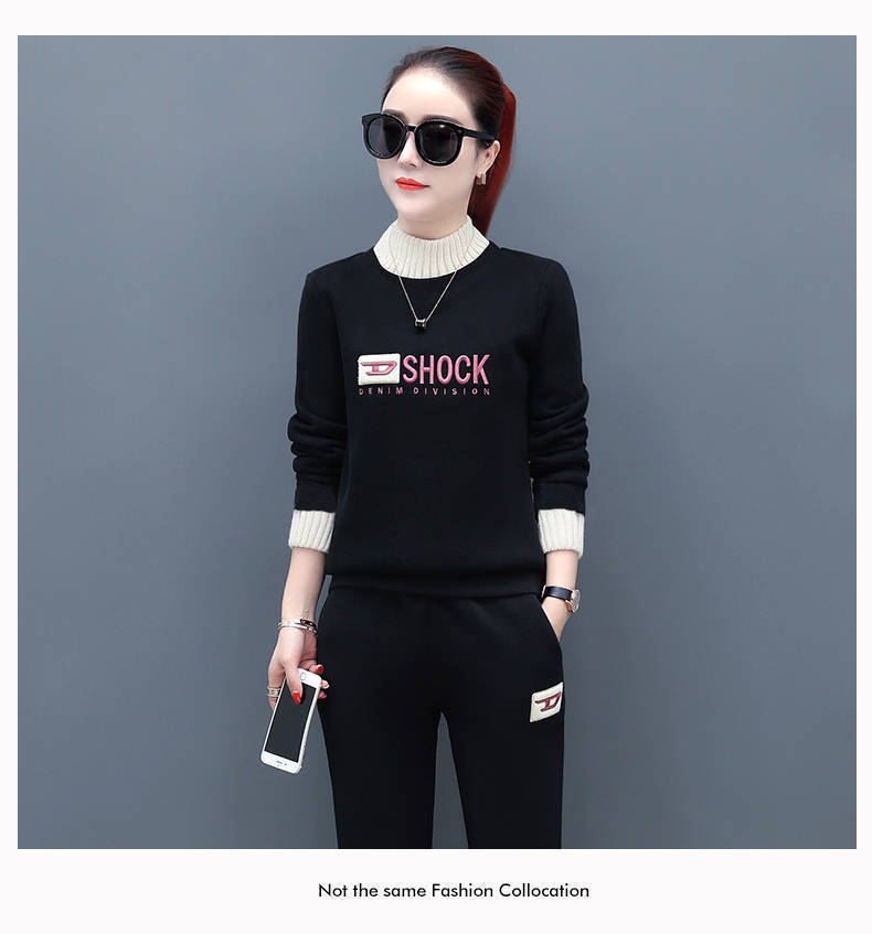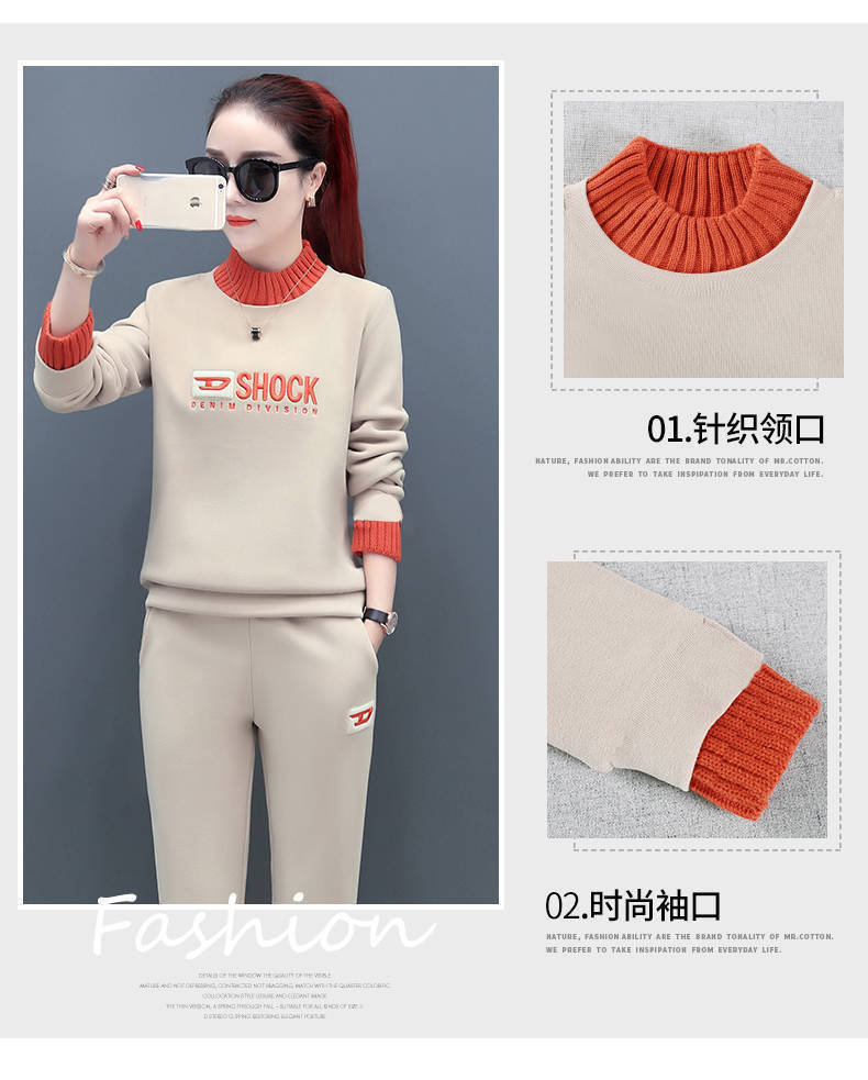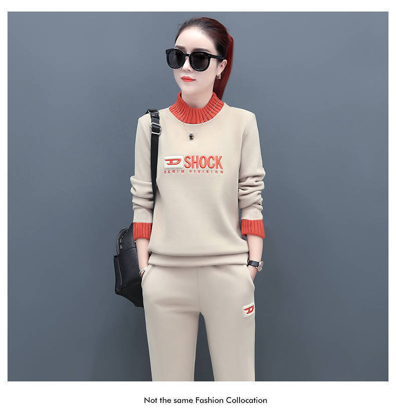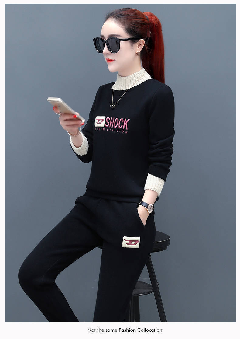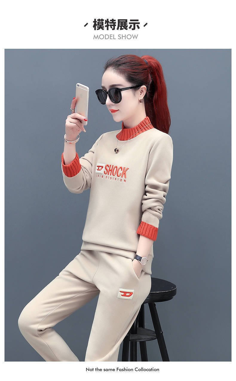 加绒加厚休闲运动套装女2024冬装新款印花卫衣保暖裤显瘦两件套潮