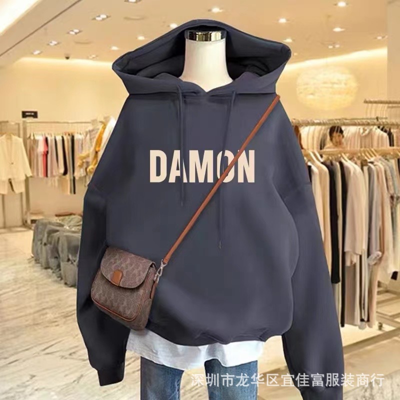 nasa新款秋冬季薄款连帽卫衣女宽松版慵懒风上衣韩版大码女装外套