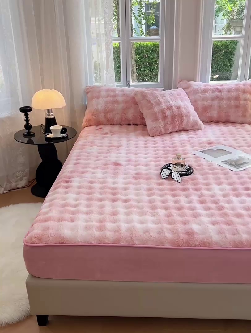 床笠2024新款家用双人加厚床罩床垫保护套泡泡绒仿兔绒床套可水洗