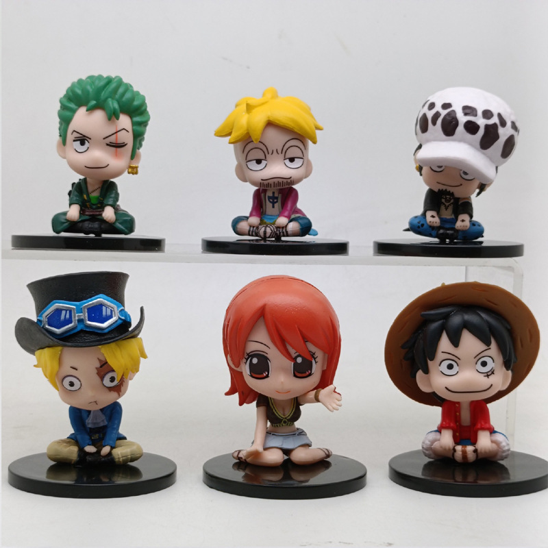 6款Q版坐姿海贼手办航海王路飞索隆娜美罗扭蛋娃娃机公仔玩具摆件