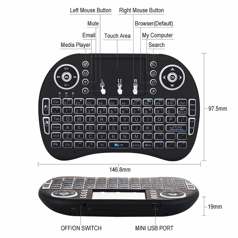 外贸I8键盘2.4G mini键盘小型飞鼠无线蓝牙背光mini keyboard i8
