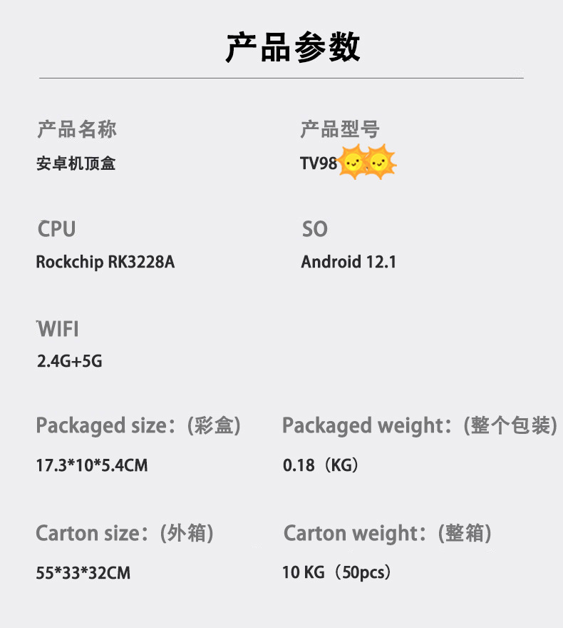 TV98 sti机顶盒RK3228 4K高清蓝牙双5gWIFi安卓12电视盒子tv box