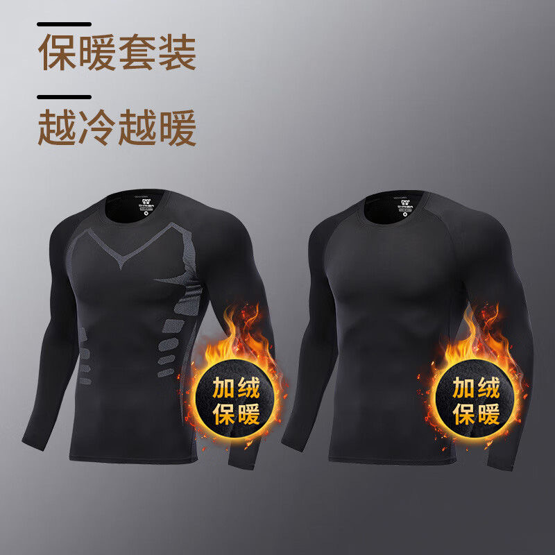 保暖男士套装紧身加绒保暖秋衣秋裤户外跑步运动速干健身衣服秋冬