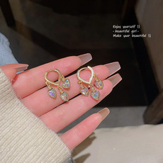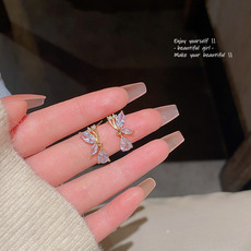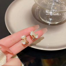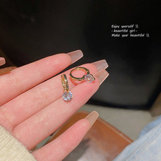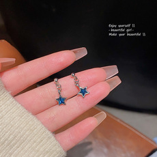 甜美可爱蓝色星星月亮耳钉女S925银针百搭气质珍珠耳环耳饰品批发