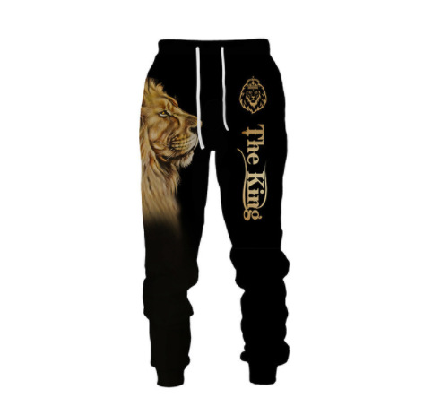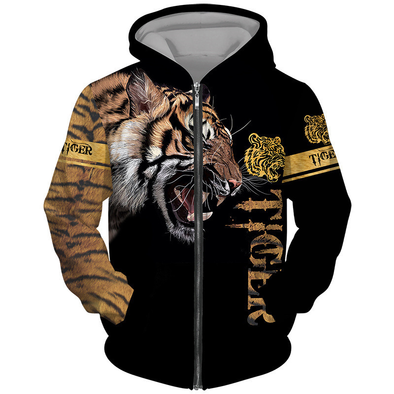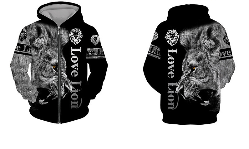 跨境新款男士秋冬运动套装3D狮子老虎系列休闲连帽卫衣+长裤2件套