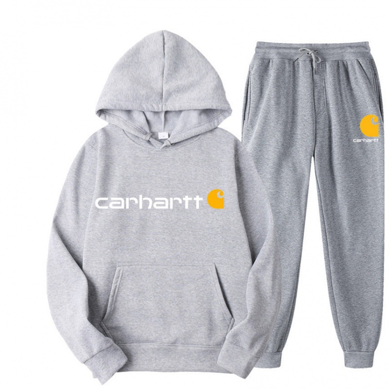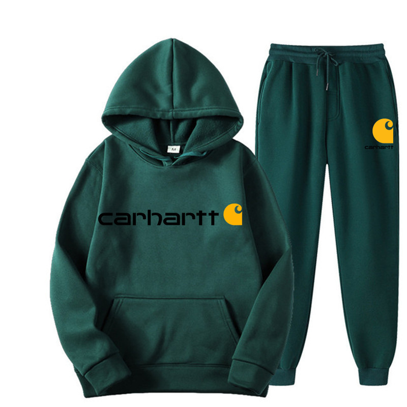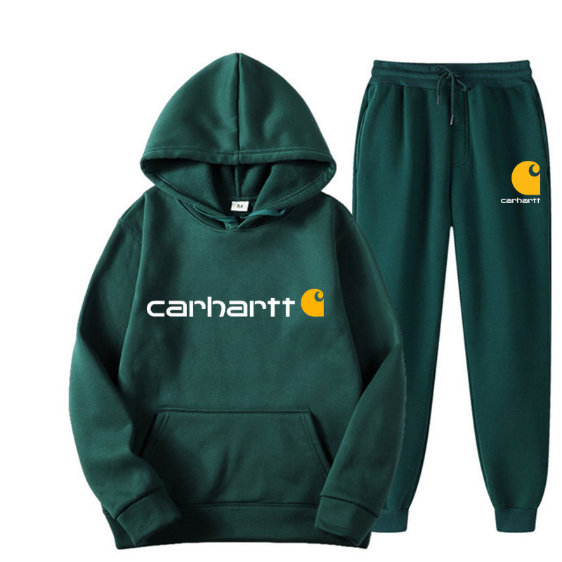 2023跨境新款外贸男士运动套装时尚休闲冬季拼接连帽卫衣长裤套装