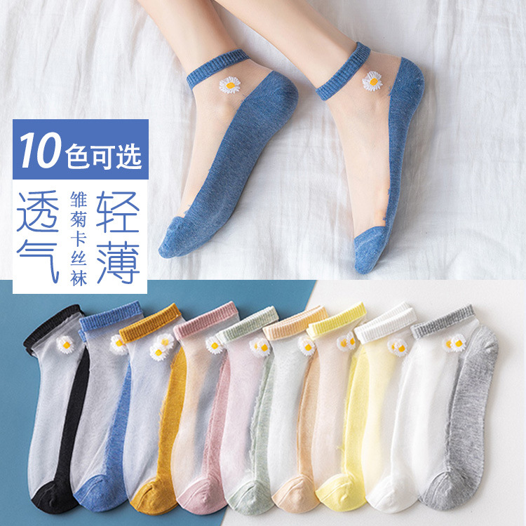 小雏菊袜子玻璃丝袜夏季薄款女袜丝袜透气防臭袜浅口袜地摊袜批发