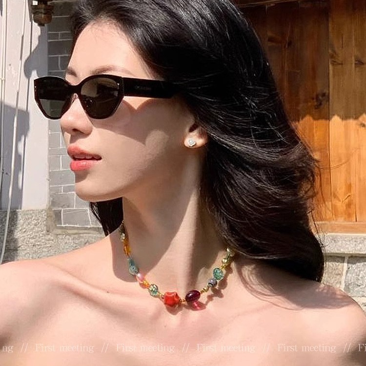 新中式民族风彩色多巴胺琉璃串珠星星项链女小众高级感锁骨链颈链